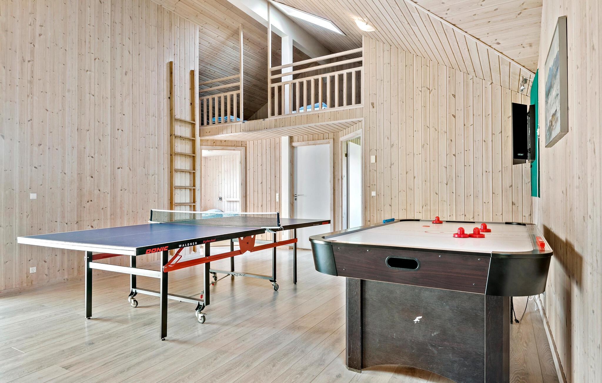 Wenn Sie auf der Suche nach einem Ferienhaus in einer attraktiven Lage mit viel Platz sind, dann ist dieses schöne Haus in Marielyst auf der Insel Falster vielleicht das richtige für Sie. Mit zahlreichen Aktivitätsmöglichkeiten und vielen Schlafplätzen ist dieses Ferienhaus ideal für große Gruppen oder mehrere Familien, die gemeinsam Urlaub machen möchten, geeignet. Beginnen Sie den Tag mit einem gemeinsamen Frühstück. In der modernen Küche ist genügend Platz zum Kochen, und an den langen Esstischen können Sie lebhafte Gespräche über die Tagespläne führen. Die stilvollen Innenräume schaffen eine einladende Atmosphäre, in der Sie sich wohlfühlen können. Organisieren Sie hier auch Turnieren, etwa im Billard, Tischtennis oder Air Hockey, und entspannen Sie sich anschließend im Pool und Whirlpool.