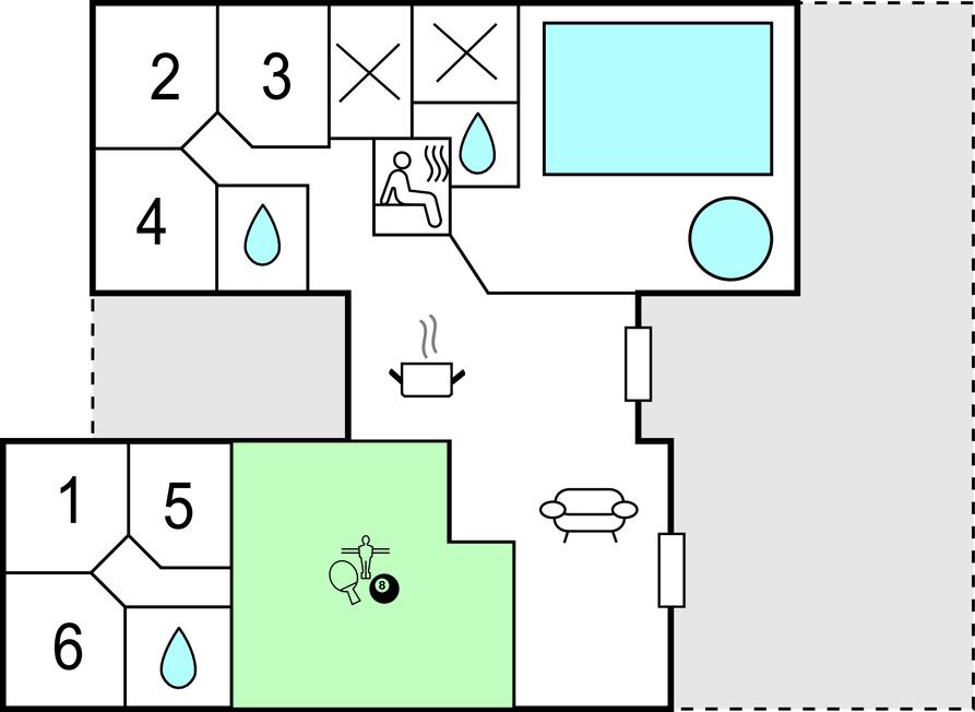 Hier finden Sie ein unglaublich schönes Ferienhaus das Unterhaltung für den ganzen Urlaub bietet: Tischfußball, Billard, Tischtennis und Darts. Das Haus verfügt außerdem über einen Poolraum, in dem Sie sich im Wasser austoben können. Oder genießen Sie eine Massage im großen Whirlpool für 6 Personen und entspannen Sie sich danach in der eigenen Sauna. Das Haus ist mit komfortablen Möbeln ausgestattet und bietet alle Annehmlichkeiten, die Sie zum Wohlfühlen benötigen.
