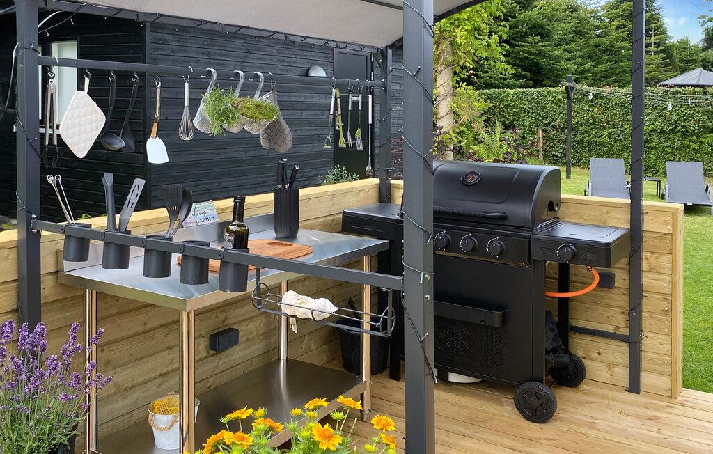 Auf der teilweisen überdachten Terrasse können Sie bei jedem Wetter entspannen und Ihre Mahlzeiten im Freien genießen, während der weitläufige Garten viel Platz zum Spielen und Entspannen bietet. Versammeln Sie sich um die Feuerstelle oder genießen ein Sonnenbad auf den Liegen.