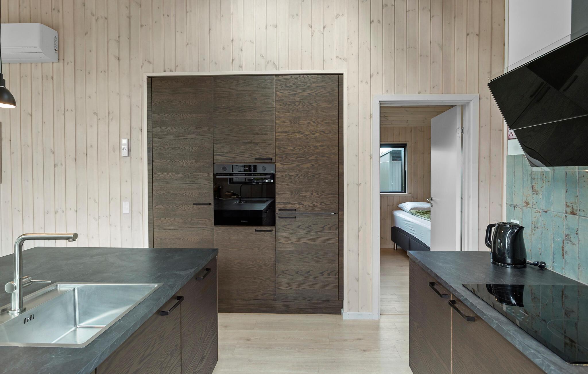 Nur unweit von einem der schönsten Strände Dänemarks entfernt, ist Ihr Ferienhaus in Marielyst der ideale Ort für einen erholsamen und aktiven Urlaub. Beginnen Sie Ihren Tag mit einem gemütlichen Frühstück auf dem überdachten Teil der großzügigen Terrasse. Genießen Sie den Komfort der modernen Küche und bereiten Sie gemeinsam Ihre Lieblingsgerichte zu. Dank der großen Fensterfront fällt das Licht wunderbar in das gemütliche Wohnzimmer, wo Sie es sich vor dem Kaminofen oder bei einem Film gemütlich machen können.