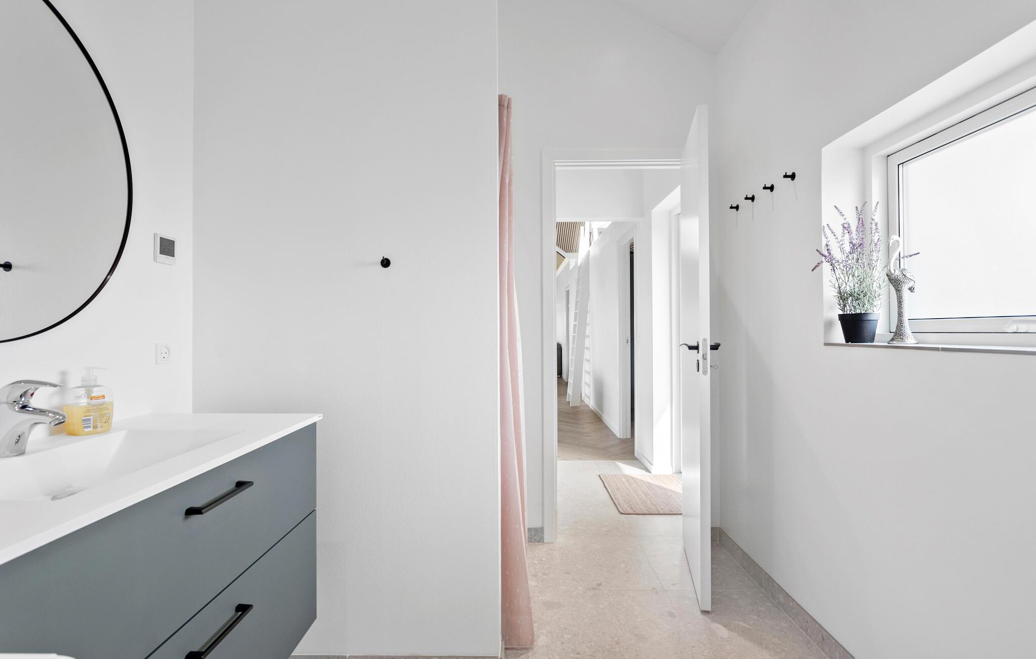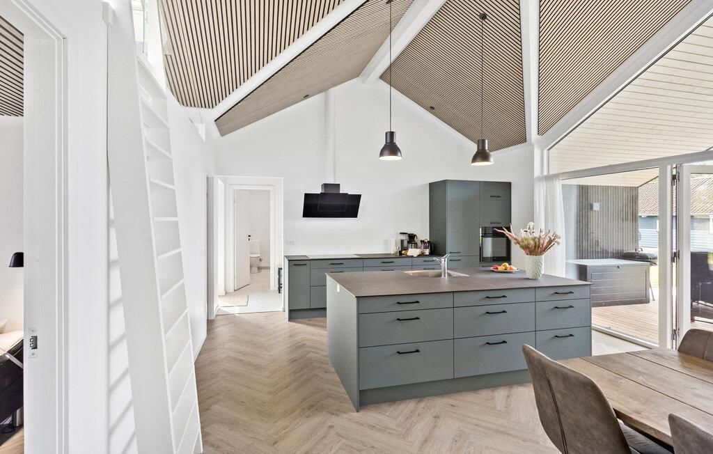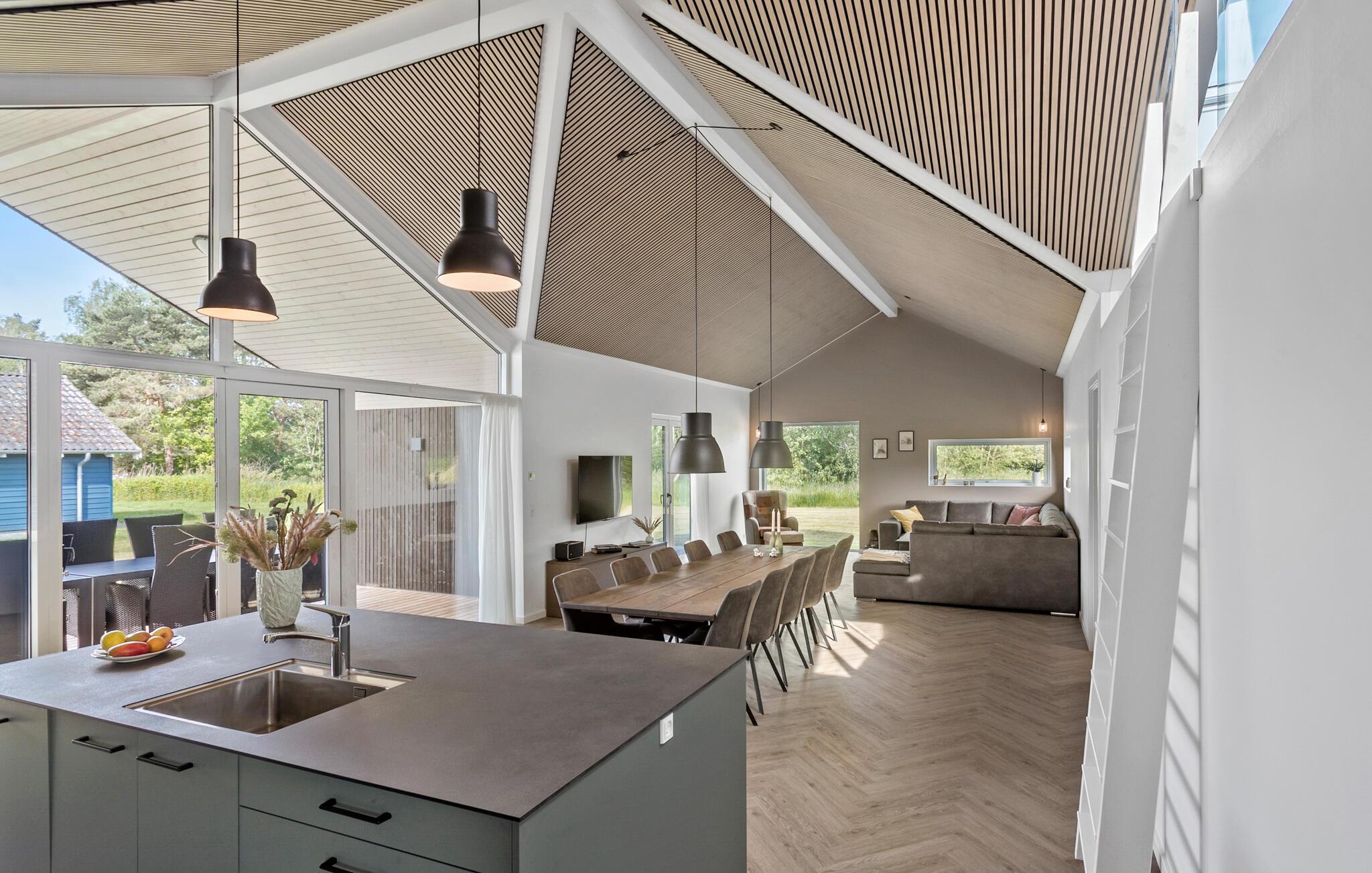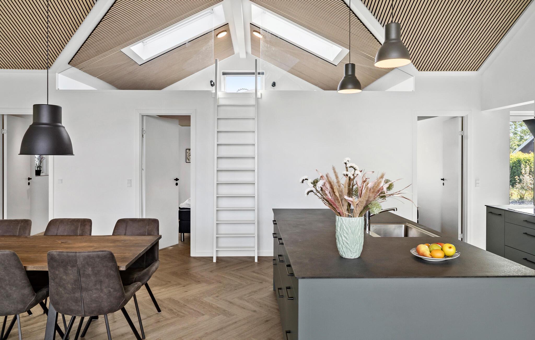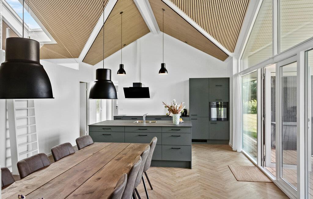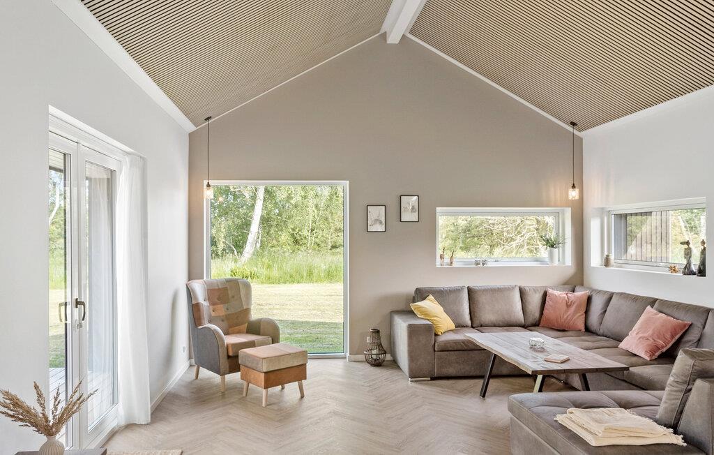 Kommen Sie an und freuen sich mit Ihrer Familie auf Ihren Urlaub in diesem stilvollen und einladenden Haus. Große Fenster, helles Holz sowie Farben schaffen eine Umgebung, die es Ihnen leicht macht Ihre Alltagssorgen zu vergessen. Gemeinsam mit der hochwertigen und ansprechenden Einrichtung können Sie die Umgebung auskosten und für Ihre Familienzeit nutzen. Blicken Sie beim Kochen in der Küche mit Kochinsel hinaus in den Garten und treten von dort mit Ihren Mahlzeiten auf die überdachte Terrasse. Spüren Sie die Sonnenstrahlen auf Ihrer Haut oder spielen später gemeinsam mit Ihren Kindern im Garten.