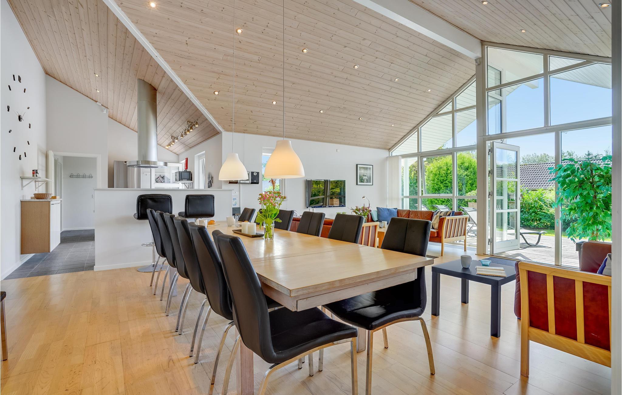 Durchdachte Kombination von Funktionalität und Design, alles in exklusiven Materialien. Hier wird Ihnen etwas Besonderes geboten. Der kinderfreundliche Strand liegt im Gehabstand. Die Ferienhaussiedlung ist besonders schön. Zwei Schlafzimmer verfügen über TV. Auf dem Schlafboden können vier schlafen. Ein Mittelpunkt kann der Aktivitätsraum sein, in ihm stehen Pool, Tischtennis, Flachbildschirm-TV mit PS2 und Xbox 360. Außerdem gibt es drahtloses Internet via Glaskabel im Haus (300/300 Mbit). Im Haus gibt es 5 helle und geräumige Schlafzimmer, 2 besitzen einen Fernseher. Auf dem richtig großen Hems können 4 Personen schlafen. Es gibt sowohl dänische als auch deutsche Fernsehkanäle. Das Haus hat Fußbodenheizung und zwei große Badezimmer, eines davon besitzt einen Whirlpool. Für Ihre Schuhe und Jacken gibt es einen praktischen Hauswirtschaftsraum mit Klinkerboden. Vor dem Wohnzimmer gibt es eine sonnige Südwestterrasse, wo Sie Windschatten haben. Für die Kinder sind Schaukel, Sandkasten, Rutsche und zwei riesige Spieltürme mit Hängebrücke und Feuerwehrleiter im Garten vorhanden. Der Garten ist groß und bietet Ihnen viel Platz. Steckdose für Elektroauto innerhalb von 10 Metern: Roter 5-poliger CEE (3x16A) + normal. 230 V (1 x 10 A).
