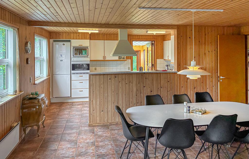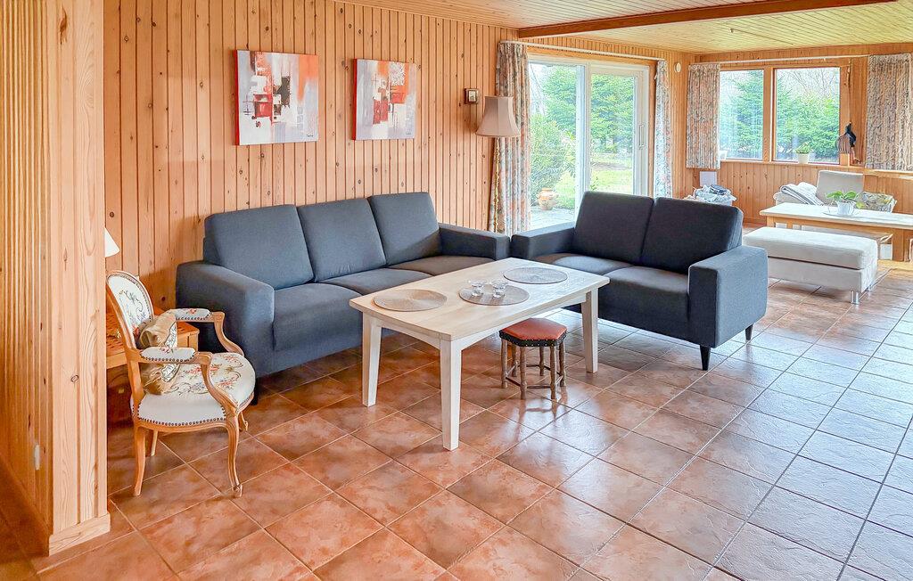 Erleben Sie einen erholsamen Urlaub in dem schön gelegenen Haus, von dem Sie zu Fuß den Strand erreichen. Im Innenbereich des Hauses begrüßt Sie eine wohnliche und einladende Gestaltung. Entspannen Sie nach Ihren Unternehmungen im Wohnbereich, der mit bequemen Sitzmöbeln zum Verweilen einlädt und durch das viele Holz sehr gemütlich wirkt. Nehmen Sie hier die Mahlzeiten mit schönem Blick ins Freie ein.
