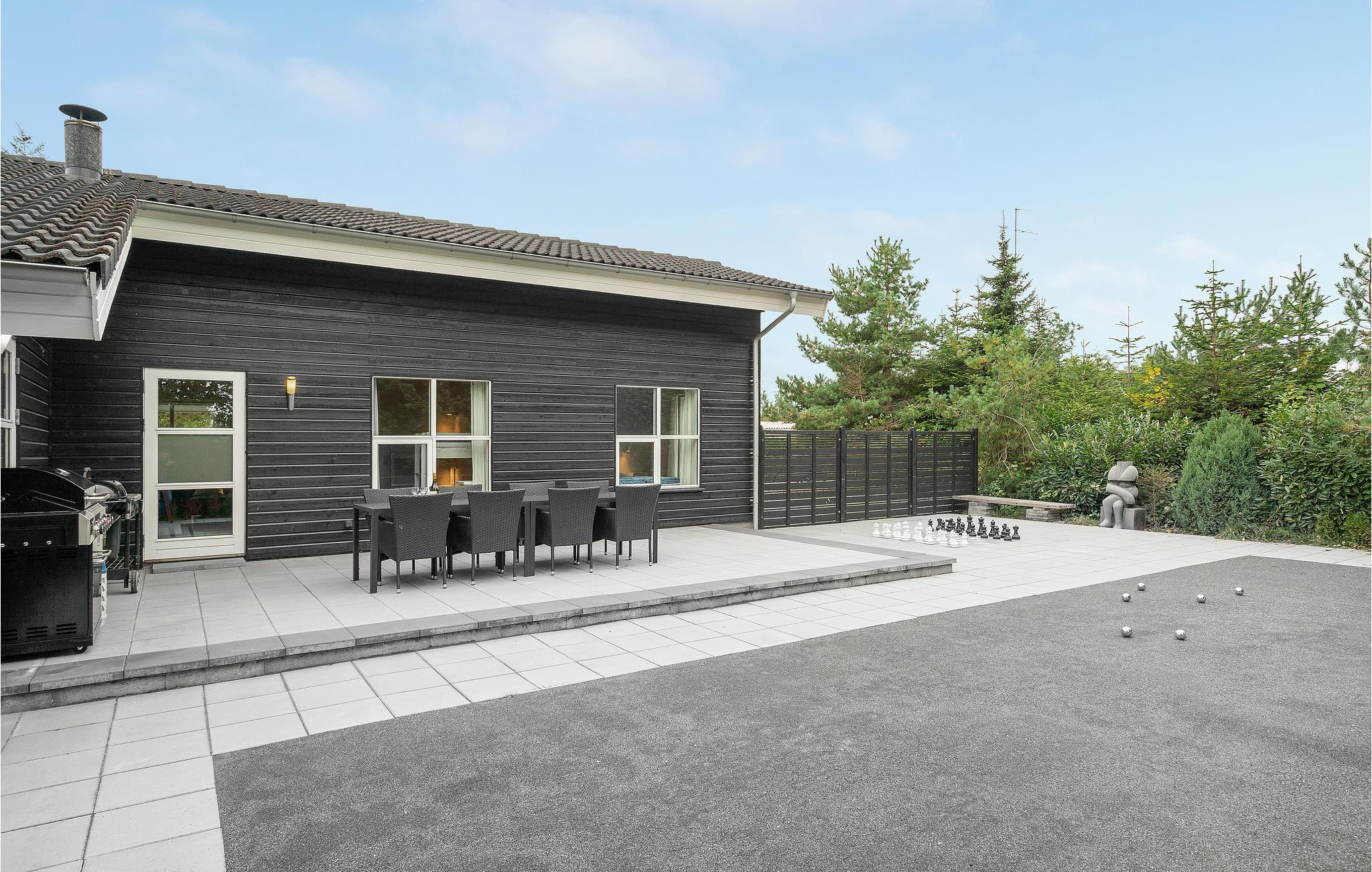 Im Herzen des Badeortes Marielyst liegt dieses fantastische Ferienhaus mit Platz für zwei bis drei Familien. Das Haus ist mit komfortablen Möbeln ausgestattet und wurde 2020 renoviert. Den Mittelpunkt des Hauses bildet der 16 m² große Pool und der Whirlpool mit Platz für 2-3 Personen. Hier ist auch eine Sauna. Die funktionelle Küche ist optimal eingerichtet. Vom Wohnzimmer mit Kaminofen kommen Sie zur großen, teilweise überdchten Terrasse, die gute Möglichkeiten für schöne Grillabende bietet. Auf der Terrasse erwartet Sie noch ein ganz besonderes Highlight: eine Badetonne für Wellness unter freiem Himmel. Hinter dem Haus ist eine weitere Terrasse angelegt mit Petanquebahn und einem Außenschachbrett. Im Garten finden Sie außerdem eine 12-Loch Krolfbahn.