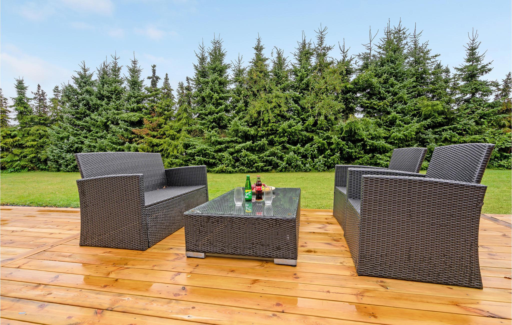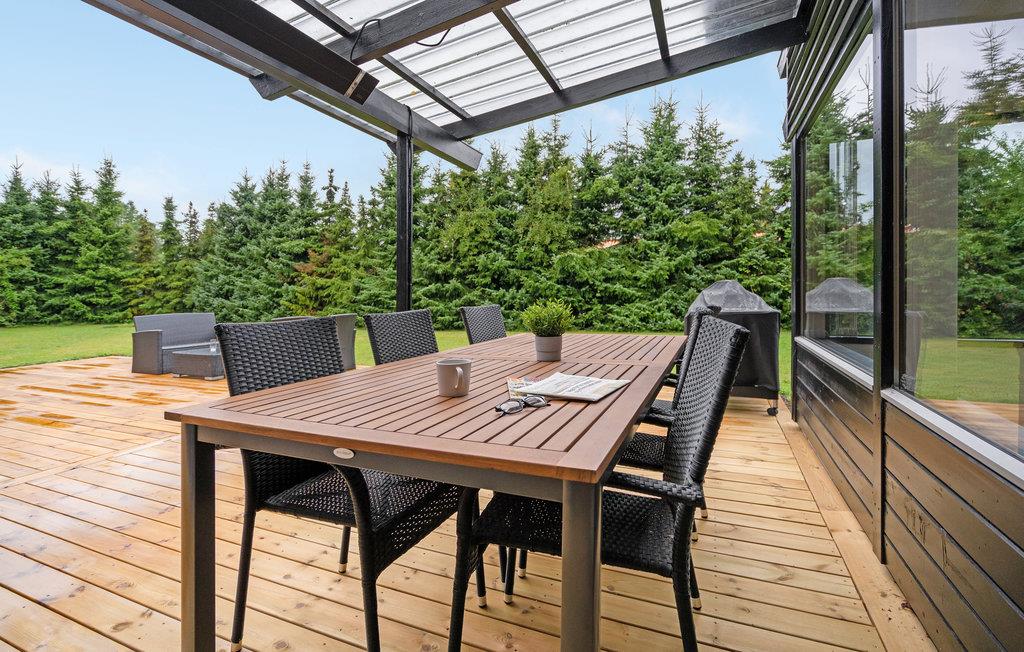Draußen steht Ihnen eine offene Terrasse zur Verfügung, sodass Sie die langen dänischen Sommerabende draußen verbringen können. Genießen Sie zum Beispiel den Abend auf den Loungemöbeln mit einem guten Glas Wein und lassen Sie den Tag gemütlich ausklingen.