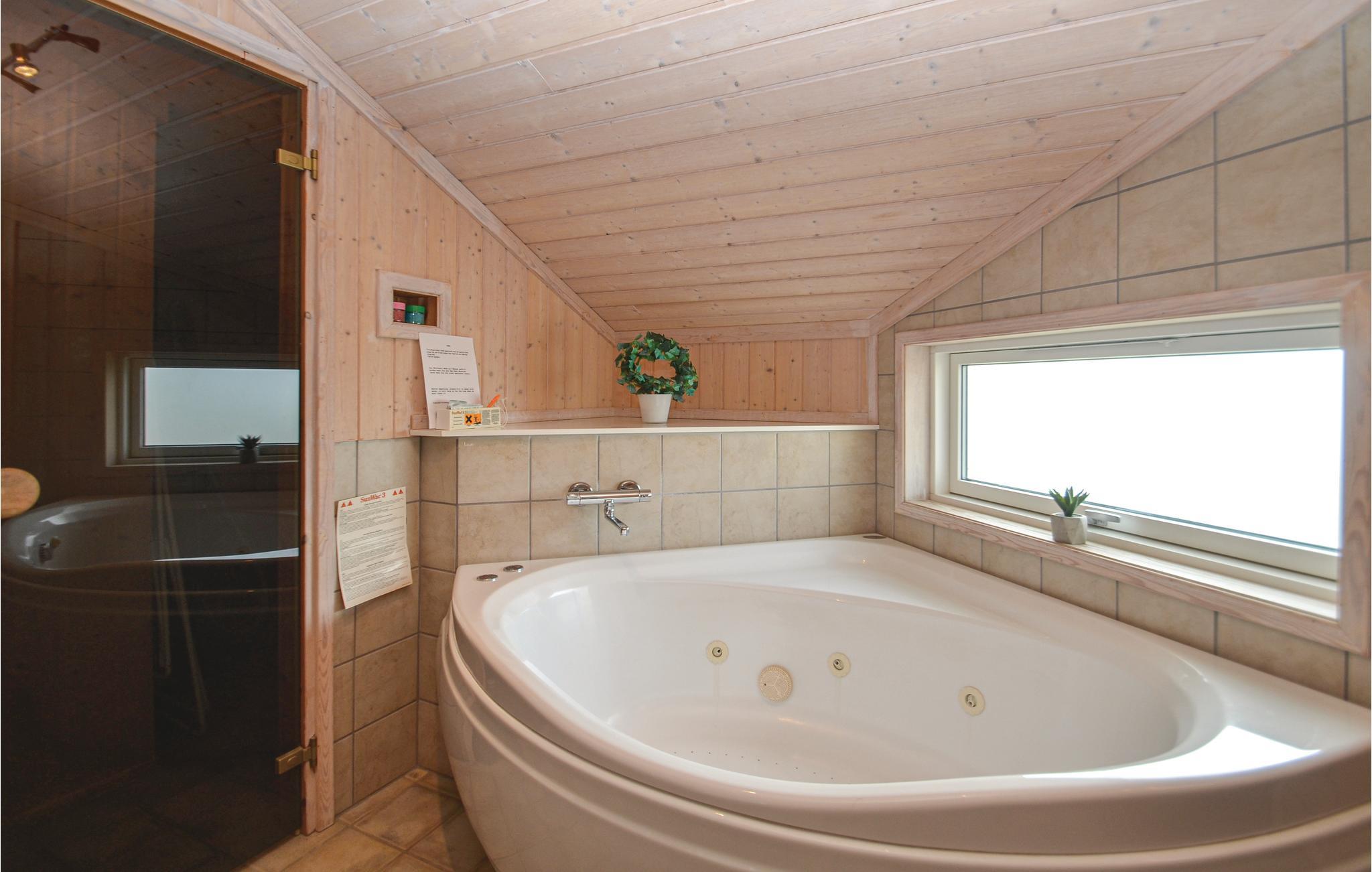 Dieses schöne Ferienhaus befindet sich n einem Gebiet mit einem malerischen See und einem kleinen Bach sowie grünen Gemeinschaftsbereichen. Das Haus ist hell und freundlich eingerichtet, mit herrlichen Panoramafenstern, die einen tollen Lichteinfall ermöglichen. Sie haben hier 3 Schlafzimmer und einen gemütlichen Alkoven im Wohnzimmer. Außerdem gibt es 2 Bäder, wodurch das Haus auch für 2 Familien bestens geeignet ist. Im gemütlichen Wohnzimmer befindet sich ein Kaminofen und eine Sofaecke mit Flachbildschirm. Aus der offenen Küche können Sie Wohnzimmer und Essplatz einsehen. Selbstverständlich gibt es überall im Haus WLAN. Genießen Sie ein Bad im Whirlpool und wärmen Sie sich in der Sauna auf. Am Haus befinden sich großzügige Terrassenbereiche, offene genau wie überdachte. Kurz, ein ideales Haus für jede Jahreszeit.