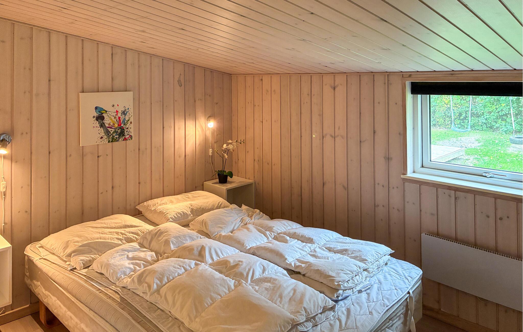 Treten Sie schon morgens auf die schöne Holzterrasse, wo Sie vor Wind und Wetter geschützt sind und sich zum Frühstücken oder zum Abendessen treffen können. Um leckere Mahlzeiten im Freien zuzubereiten, steht Ihnen ein Grill zur Verfügung. Die Kinder können im grünen Garten nicht nur umhertollen, sondern auch schaukeln, klettern und rutschen.