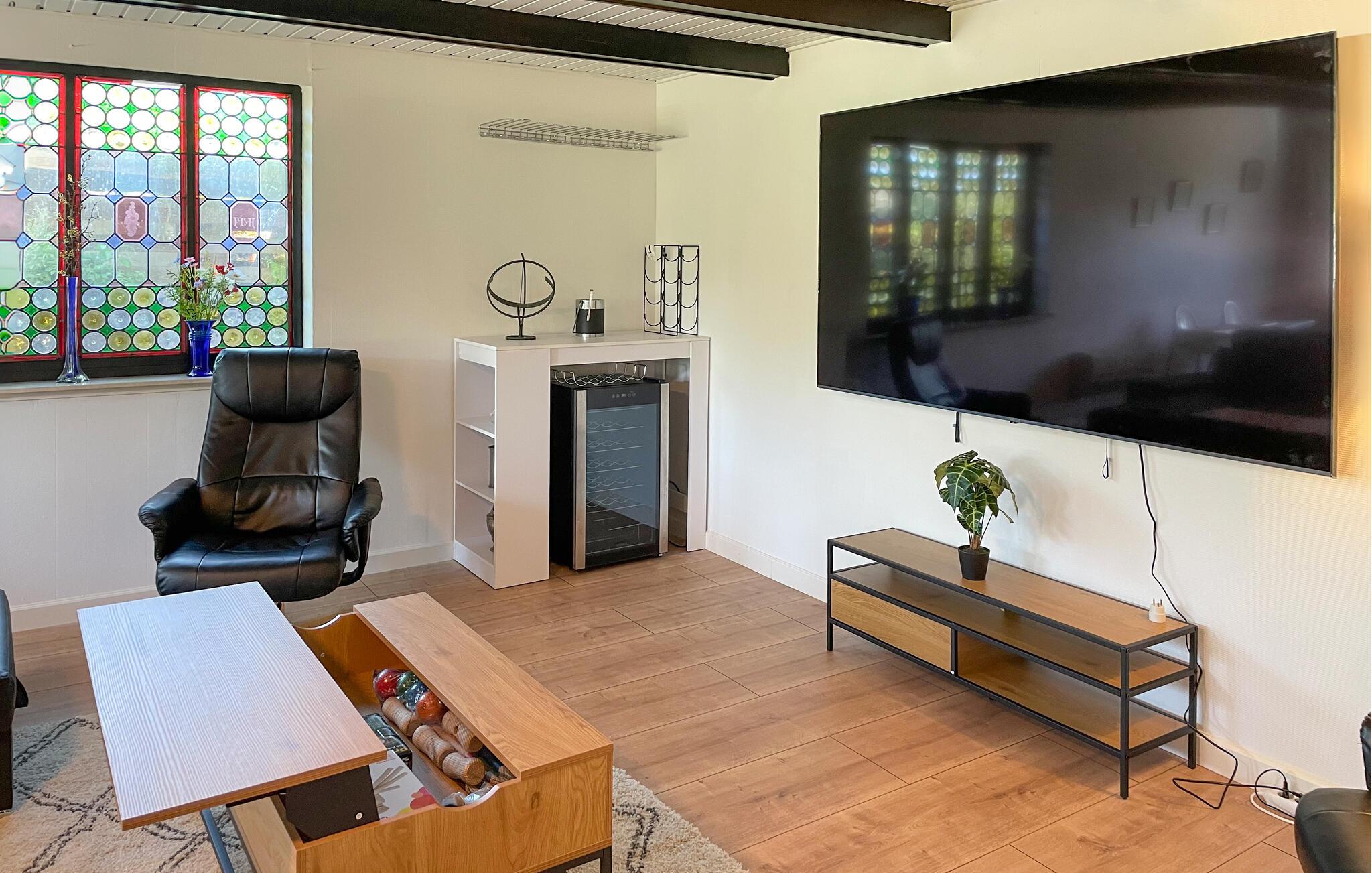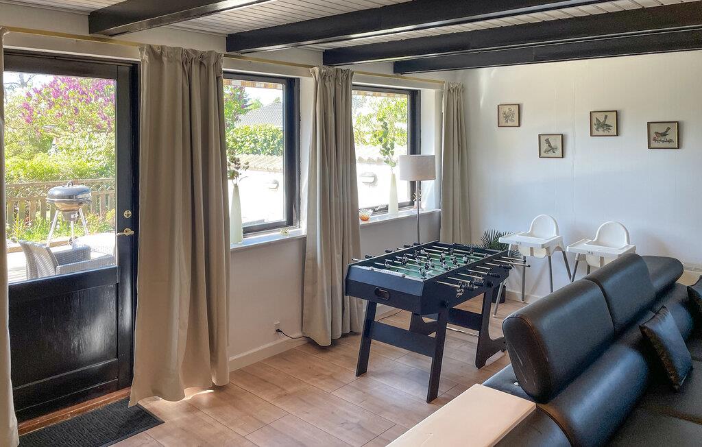 Ihr Ferienhaus ist ein angenehmer Ort für eine Auszeit mit der Familie. Beginnen Sie den Tag mit einem Frühstück am schönen Esstisch und lassen Sie dabei den Blick in den gepflegten Garten schweifen. Der offene Wohnraum mit großen Fenstern schafft ein freundliches Ambiente. Entspannen Sie auf der Sofalandschaft bei einem guten Buch oder lassen Sie sich von einem Film unterhalten. Es steht Ihnen auch ein Tischkicker zur Verfügung.