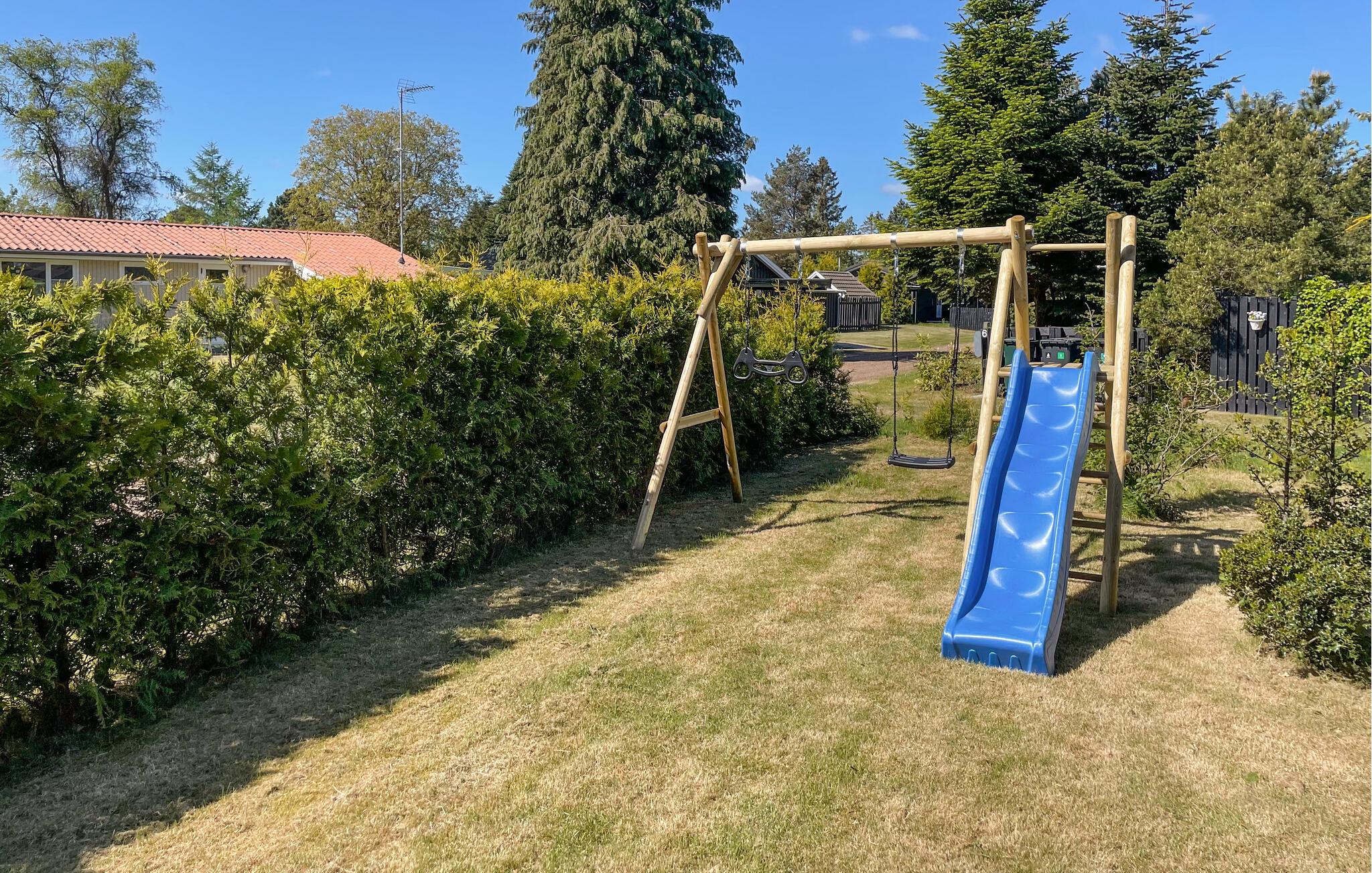 Nutzen Sie den Grill auf der Terrasse für gesellige Mahlzeiten im Freien, während die Kinder auf der Schaukel und der Rutsche spielen. Gönnen Sie sich anschließend Ruhe und Entspannung auf den gemütlichen Terrassenmöbeln.