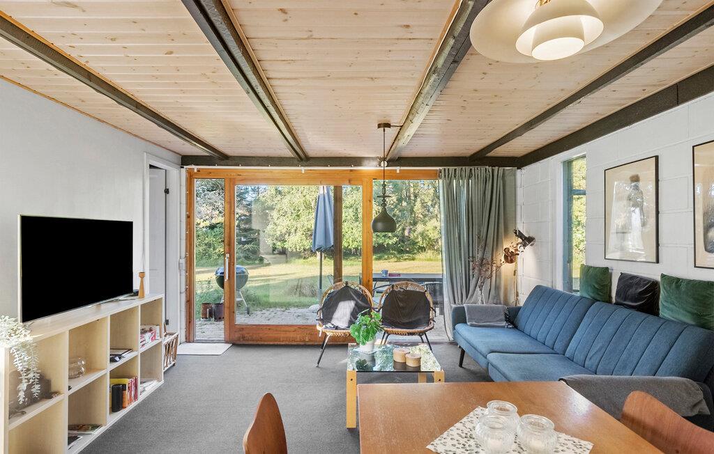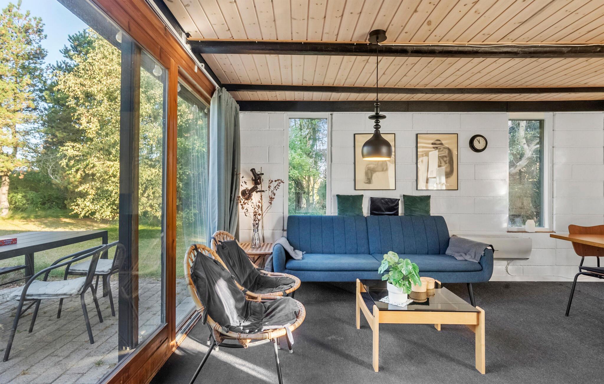 Dieses Haus empfängt Sie mit einer gemütlichen Atmosphäre mit viel Holz, großen Fenstern und liebevollen Retrodetails. Im hellen Wohnraum können Sie sich auf dem Sofa entspannen, lesen oder den Blick in den grünen Garten genießen. Verbringen Sie am Esstisch gesellige Stunden bei gemeinsamen Mahlzeiten oder einem Spieleabend. Durch die großen Türen gelangen Sie direkt hinaus auf die Terrasse.
