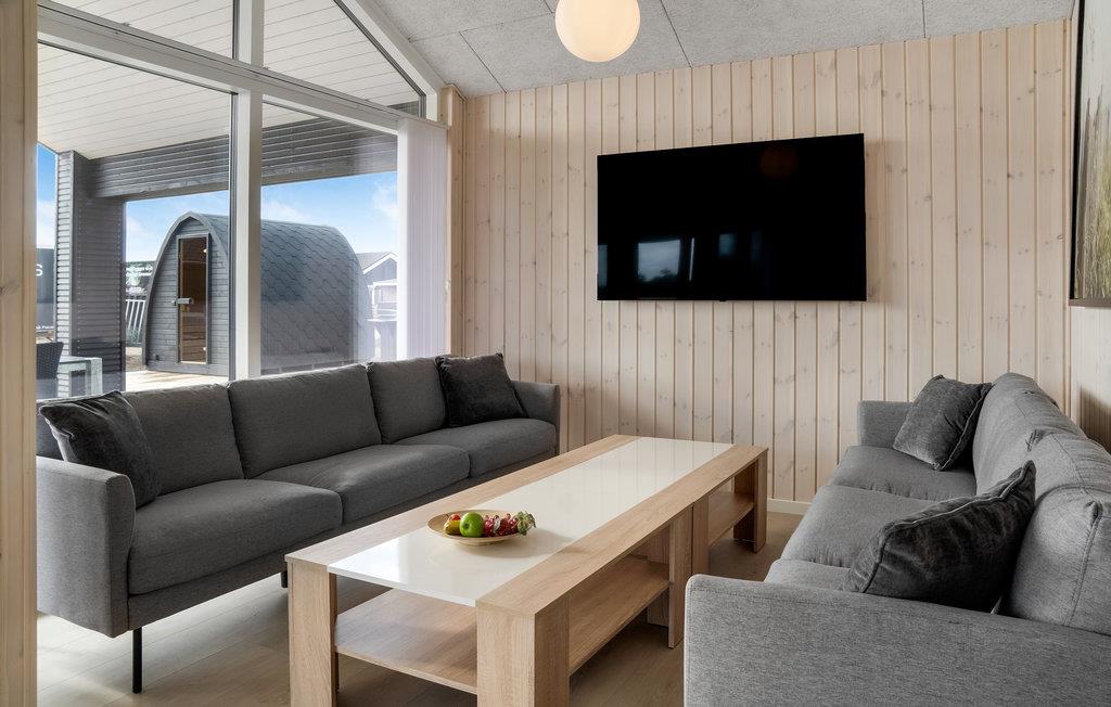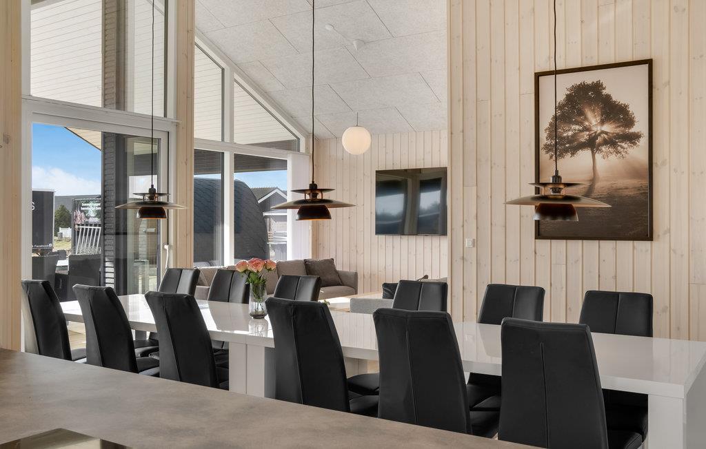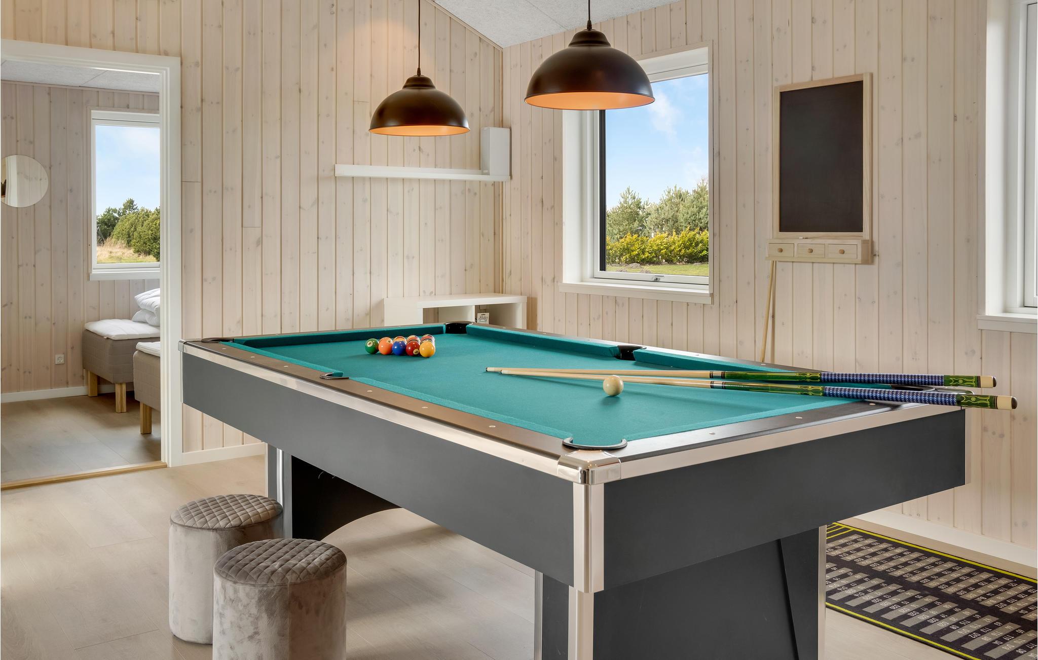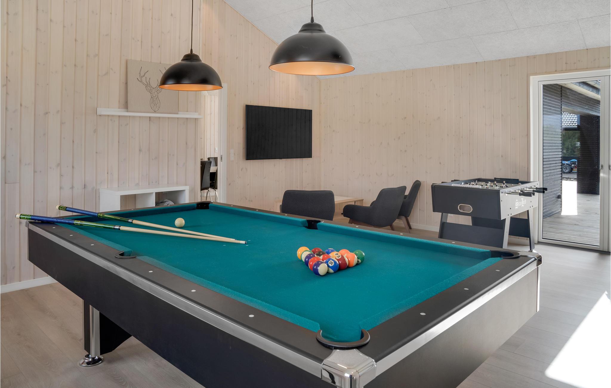 In den hellen Räumen des komfortablen Hauses können Sie mit der ganzen Familie in stilvollem Rahmen entspannen. Die moderne Einrichtung sorgt für eine wohnliche Atmosphäre, die Fensterfront ermöglicht einen schönen Einfall von Tageslicht ins Innere des Hauses. Genießen Sie die Mahlzeiten gemeinsam am langen Esstisch und bringen Sie anschließend den Kreislauf mit einer Partie Billard wieder in Schwung. Machen Sie es sich später auf den Sofas bequem, nach einem herrlichen Urlaubstag, den Sie am Strand oder mit einem Ausflug verbracht und mit einem Saunagang abgerundet haben, können Sie hier abends noch lange gemütlich zusammensitzen.