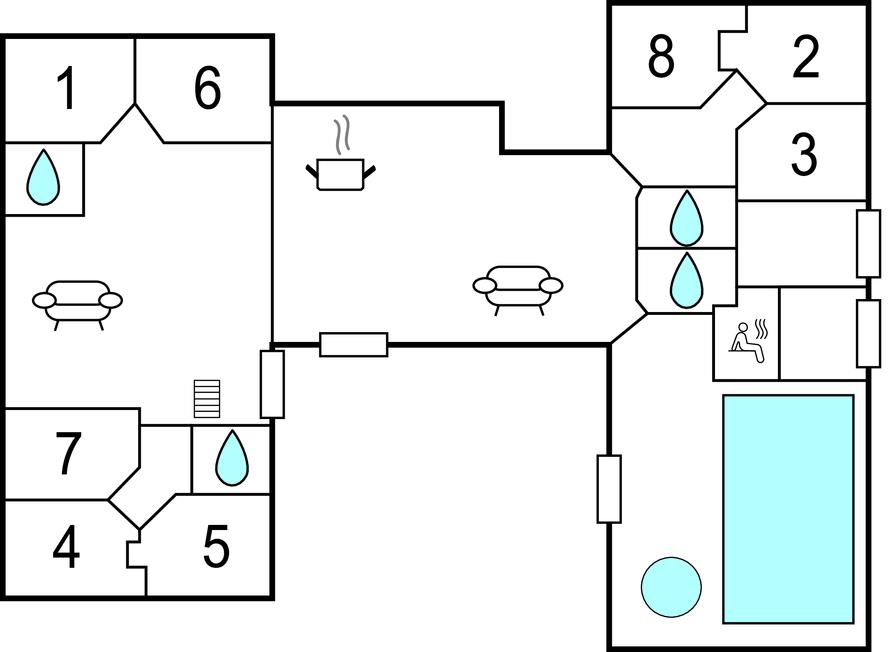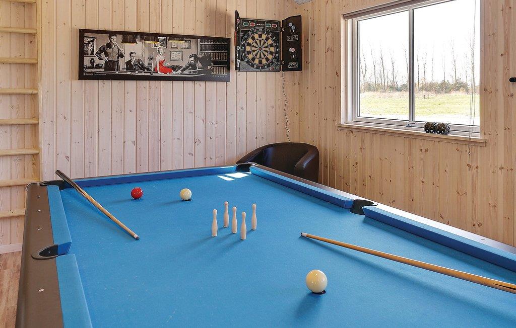 Ein beliebtes Ferienhaus mit acht Schlafzimmern, einem Hems und vier schönen Bädern. Die angenehme Einrichtung lässt Sie sich wie zu Hause fühlen. In ihm finden Sie die schön angelegte Wohnküche, sie liegt zentral im Haus und lässt Sie alle gemeinsam nach dem gemütlichen Kochen und Essen voller Behaglichkeit vor dem Kaminofen ausspannen. Nebenan liegt ein Spielzimmer mit verschiedenen Aktivitäten. Im Poolraum haben Sie stundenlang im erfrischenden Pool oder im Whirlpool für 4 Personen Spaß, lassen Sie sich zum Ausklang in der wohltuenden Sauna verwöhnen. Auf den schönen Terrassen können Sie sitzen, entspannen und in vollen Zügen den Urlaub genießen. An lauen Sommerabenden werden Sie am Grill beschäftigt sein und leckere Feriengerichte zubereiten.