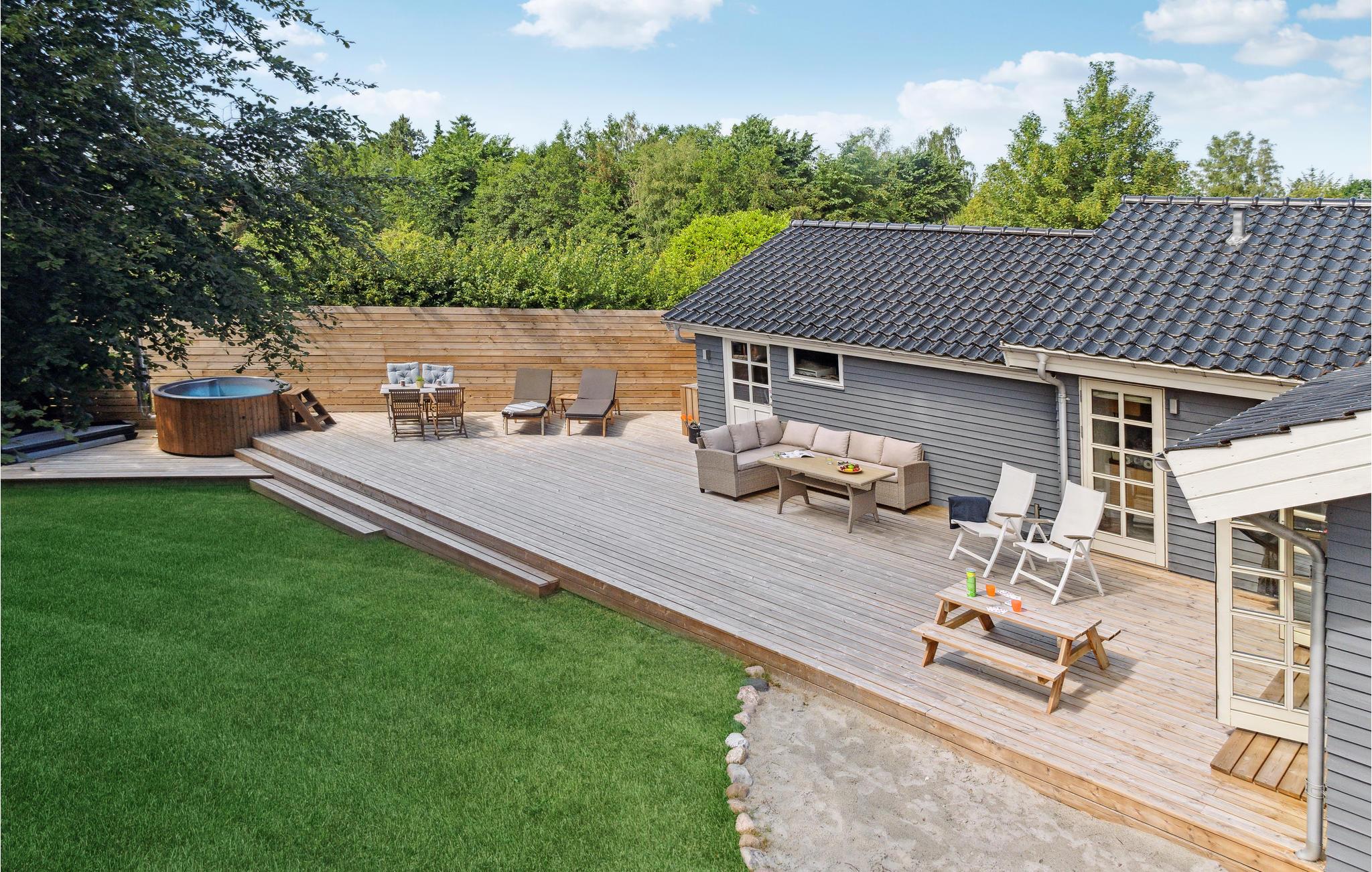 Entspannen Sie in diesem modernen Ferienhaus nahe dem Sandstrand mit Sauna und großem Garten für die ganze Familie.