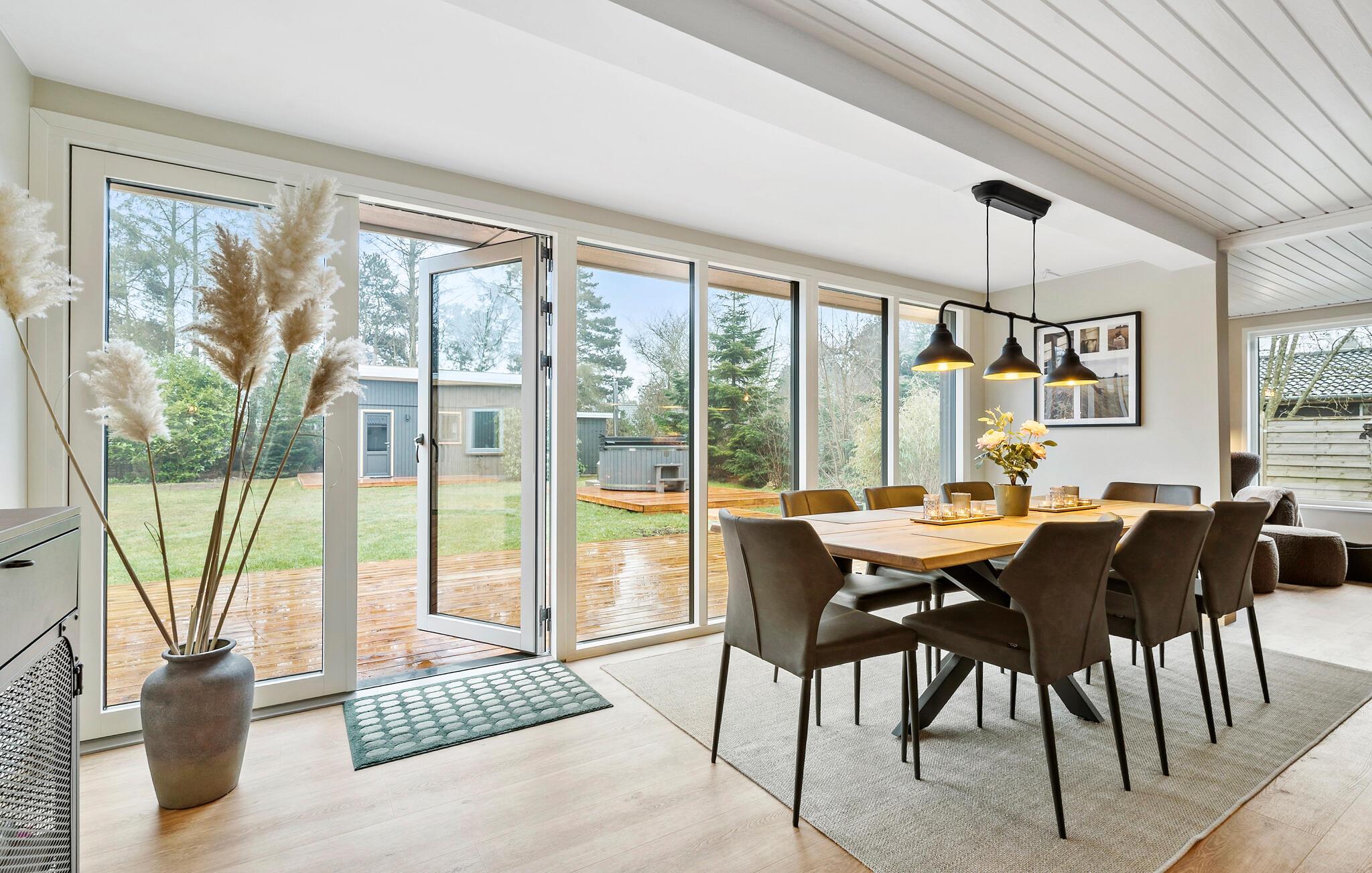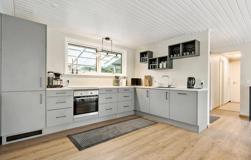 Verleben Sie erholsame Tage in diesem großzügigen Ferienhaus, das ideale Bedingungen für einen Urlaub mit Freunden oder mehreren Familien bietet. Hier haben Sie ausreichend Platz, um sich zu entspannen oder gemeinsame Stunden zu verbringen. Besonders die Lage ist ein echtes Highlight. Der wunderschöne Sandstrand von Marielyst auf der Insel Falster liegt nur einen kurzen Spaziergang entfernt und lädt zu ausgedehnten Tagen in der Natur ein. Starten Sie Ihren Morgen in der modernen Küche, die ideale Voraussetzungen für gemeinsame Kochmomente bietet. Der lange Esstisch ist der ideale Treffpunkt für gesellige Mahlzeiten und zur Planung Ihrer Unternehmungen. Genießen Sie während Ihrer Mahlzeiten den Blick ins Freie.