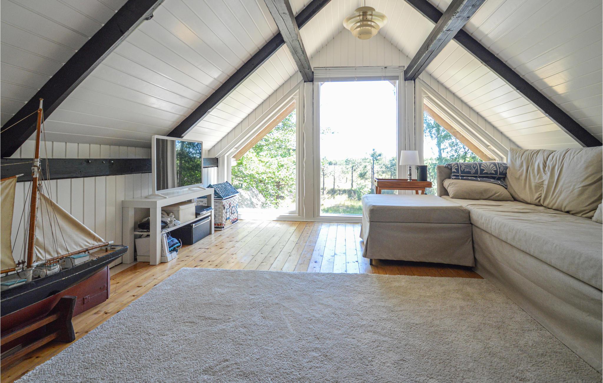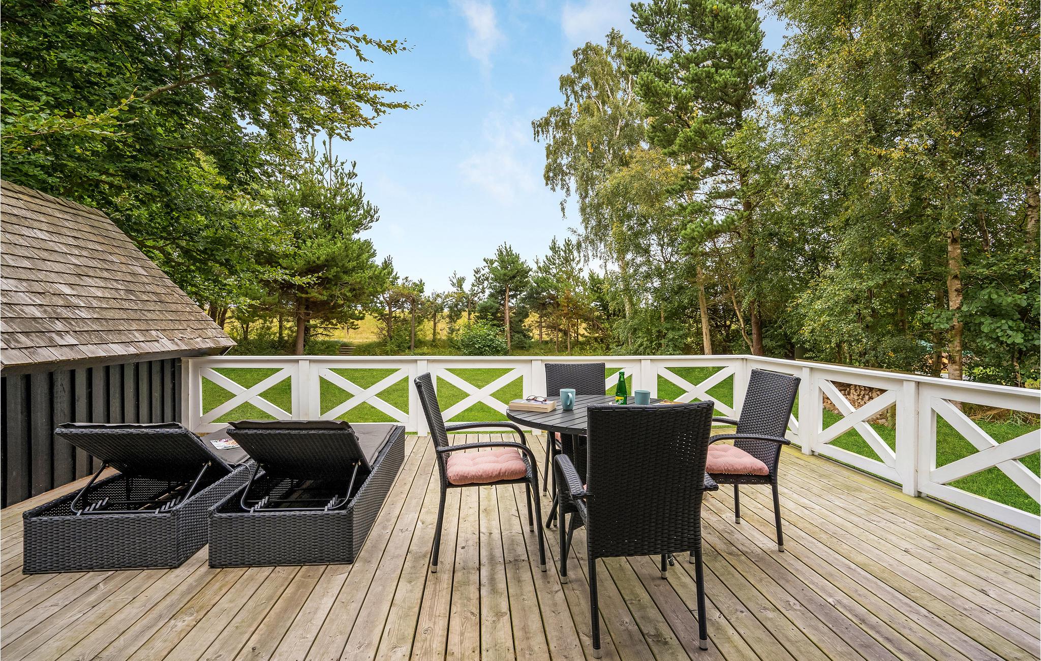 Freuen Sie sich hier auf einen erholsamen Urlaub, ganz in der Nähe von Wald und Strand. Das Haus bietet eine helle und offene Bauweise, die zu viel Gemütlichkeit und Zusammengehörigkeit mit Familie und Freunden einlädt. Hier finden Sie mehrere Wohnzimmer, in denen Sie nach einem aktiven Tag vor dem Fernseher oder Kamin entspannen können. Im Freien steht Ihnen eine große, schöne Holzterrasse mit Sonnenliegen, Gartenmöbeln und Grill zur Verfügung, sodass Sie an warmen Sommerabenden gemütliche Grillabende abhalten oder den Morgenkaffee draußen in der wunderschönen Natur rund um das Haus genießen können.