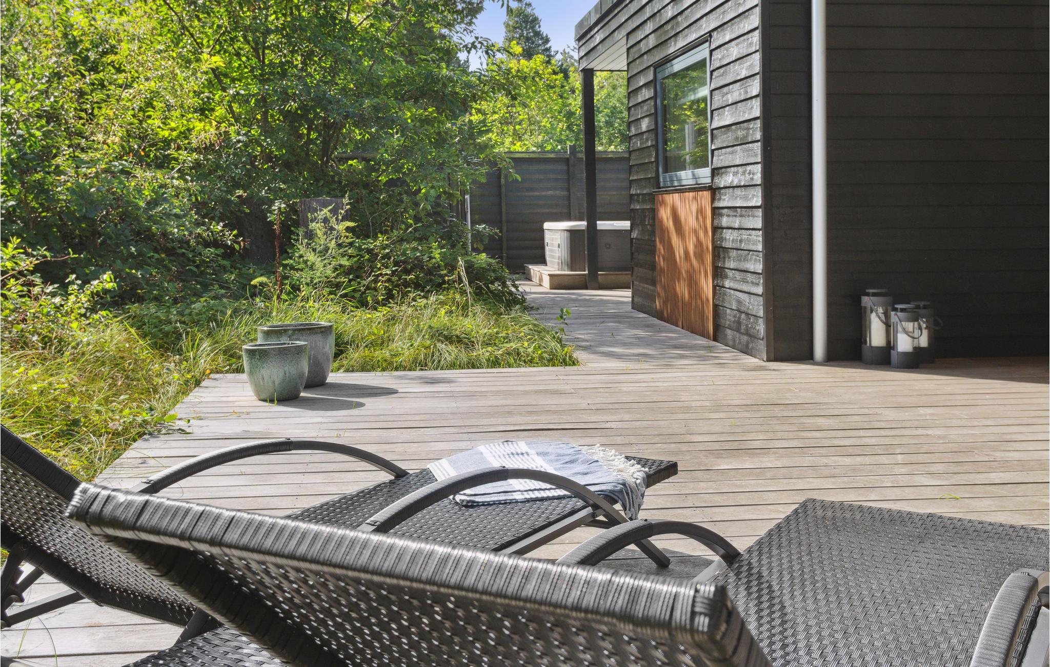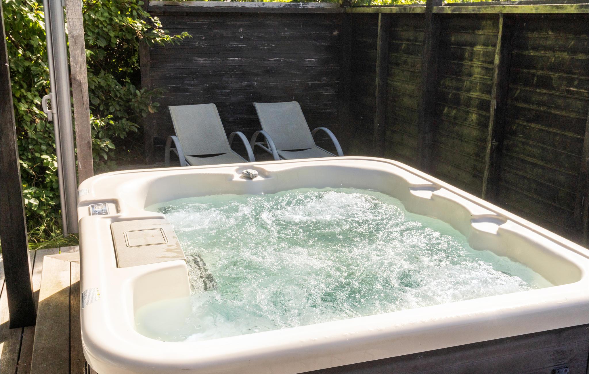 Das von Bäumen umgebene Grundstück bietet viel Platz für schöne Stunden im Freien. Lassen Sie sich auf der gemütlich möblierten Terrasse nieder, schließen Sie die Augen und genießen Sie ausgiebig die Sonne, während Sie tief die Waldluft einatmen. Ein Bad im Whirlpool unter freiem Himmel bietet pure Entspannung.