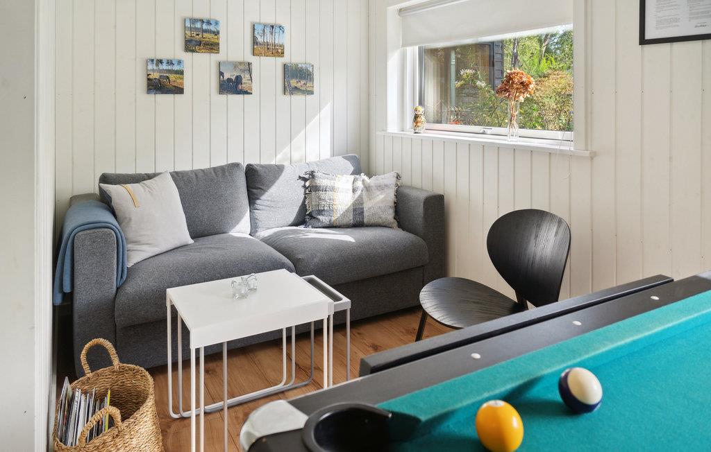 Das moderne, architektonisch interessante Haus empfängt Sie nur ein paar Schritte vom Strand entfernt und ist der richtige Ort für einen Urlaub mit viel Komfort. Schon beim Aufwachen genießen Sie hier einen schönen Blick ins Freie. Fordern Sie Ihre Mitreisenden zu vergnüglichen Duellen am Billardtisch heraus oder entspannen Sie nach einem Strandspaziergang in der Sauna, die Ihnen einen wundervollen Blick in den Garten gewährt.