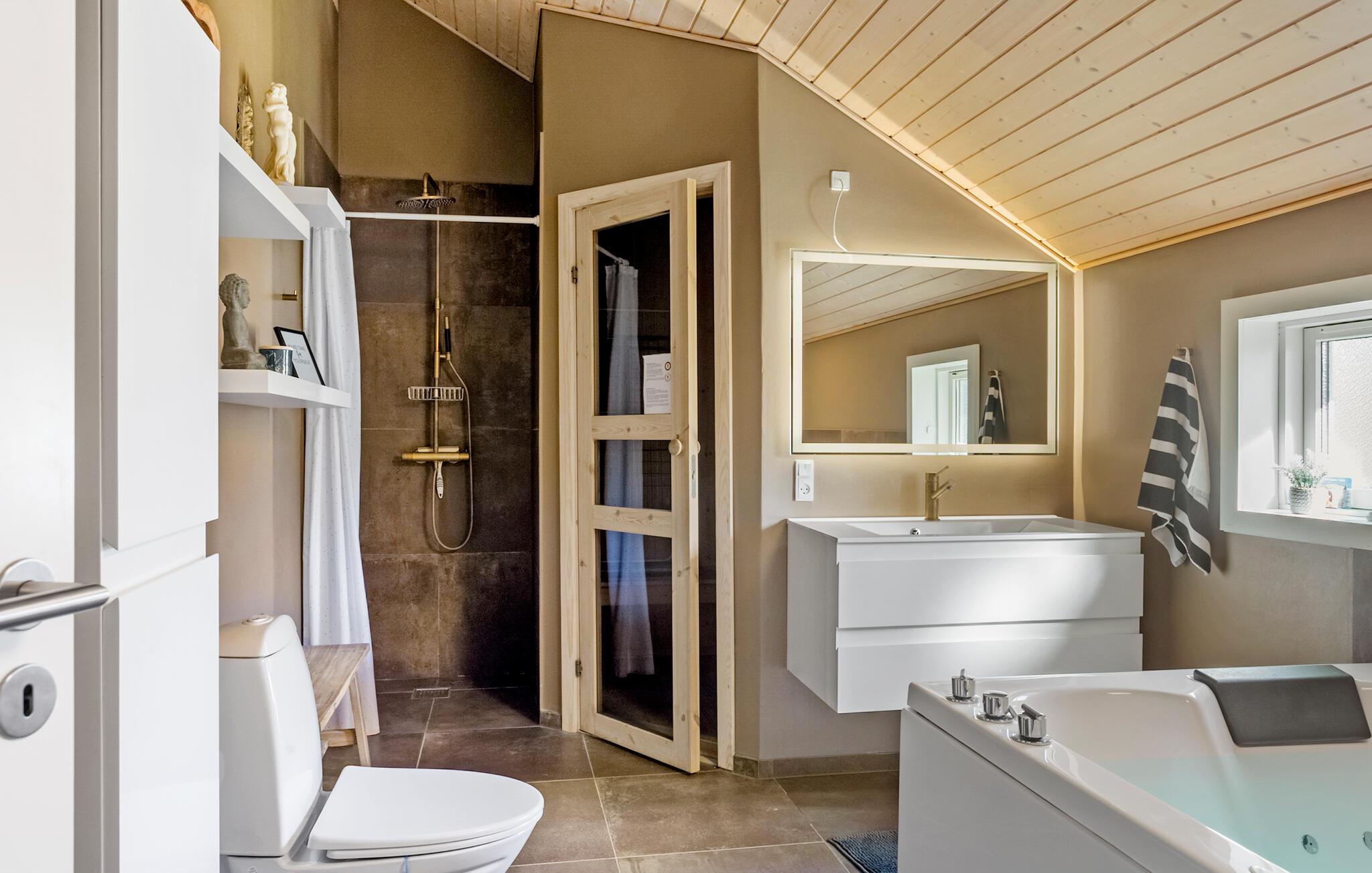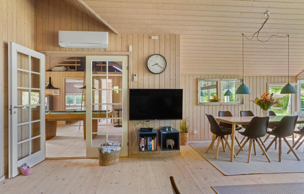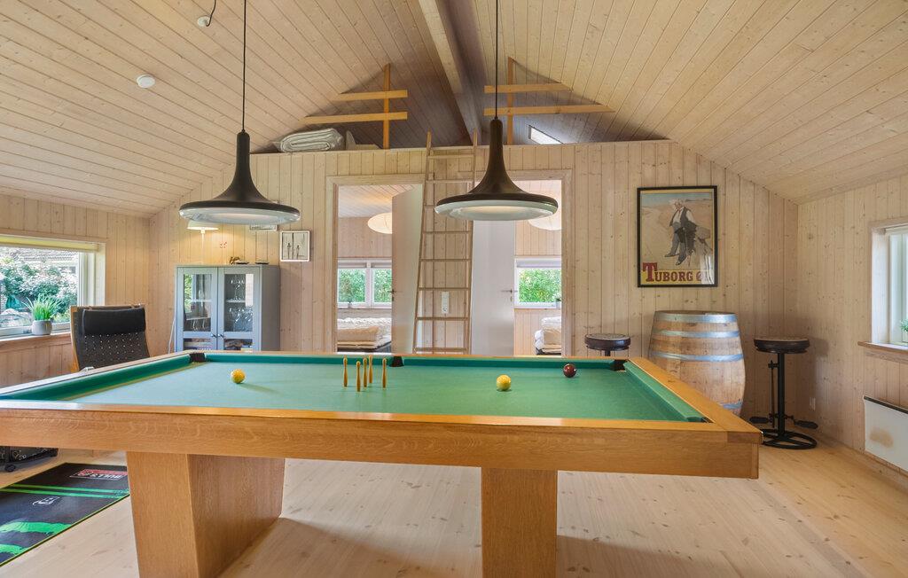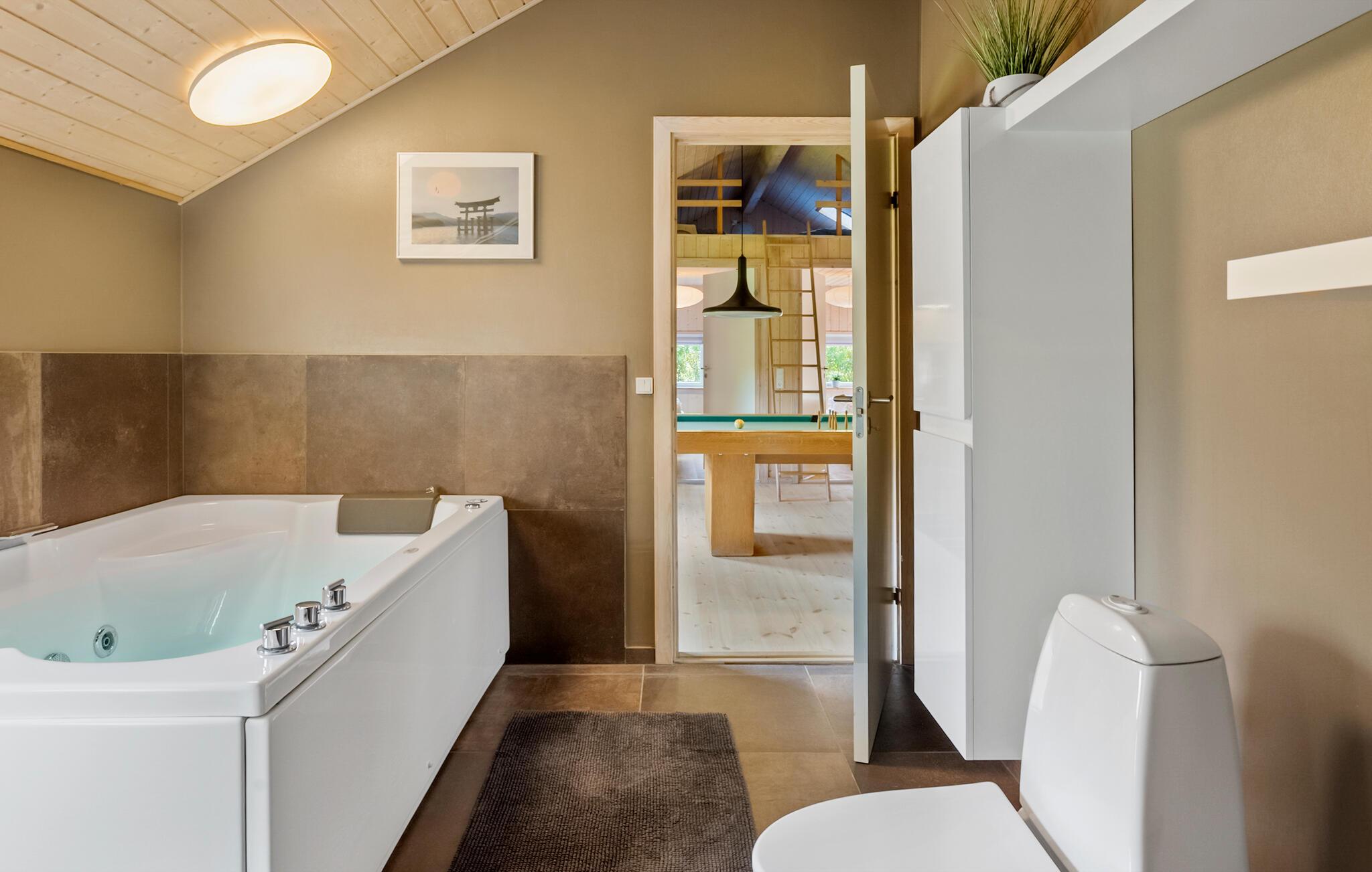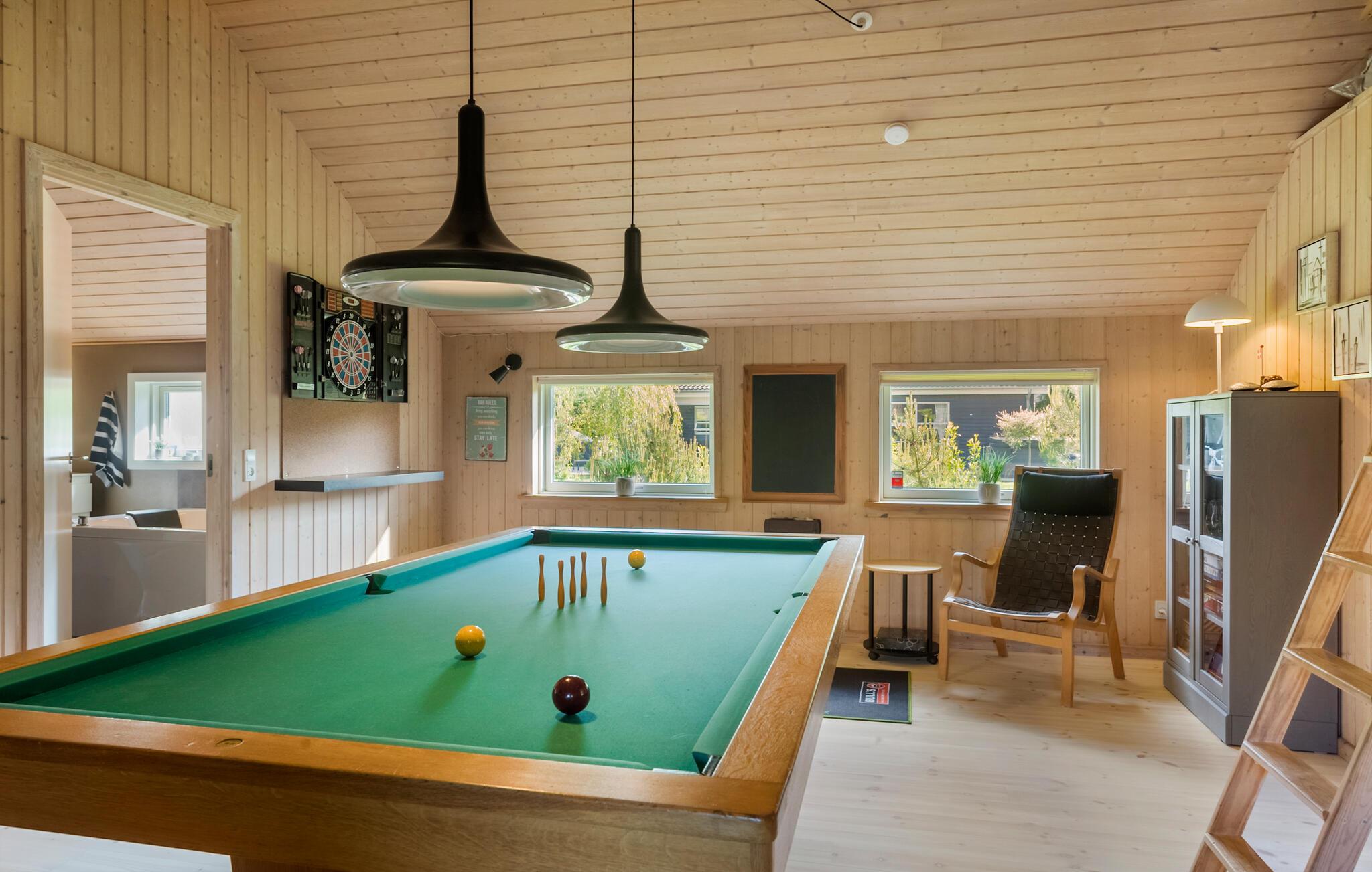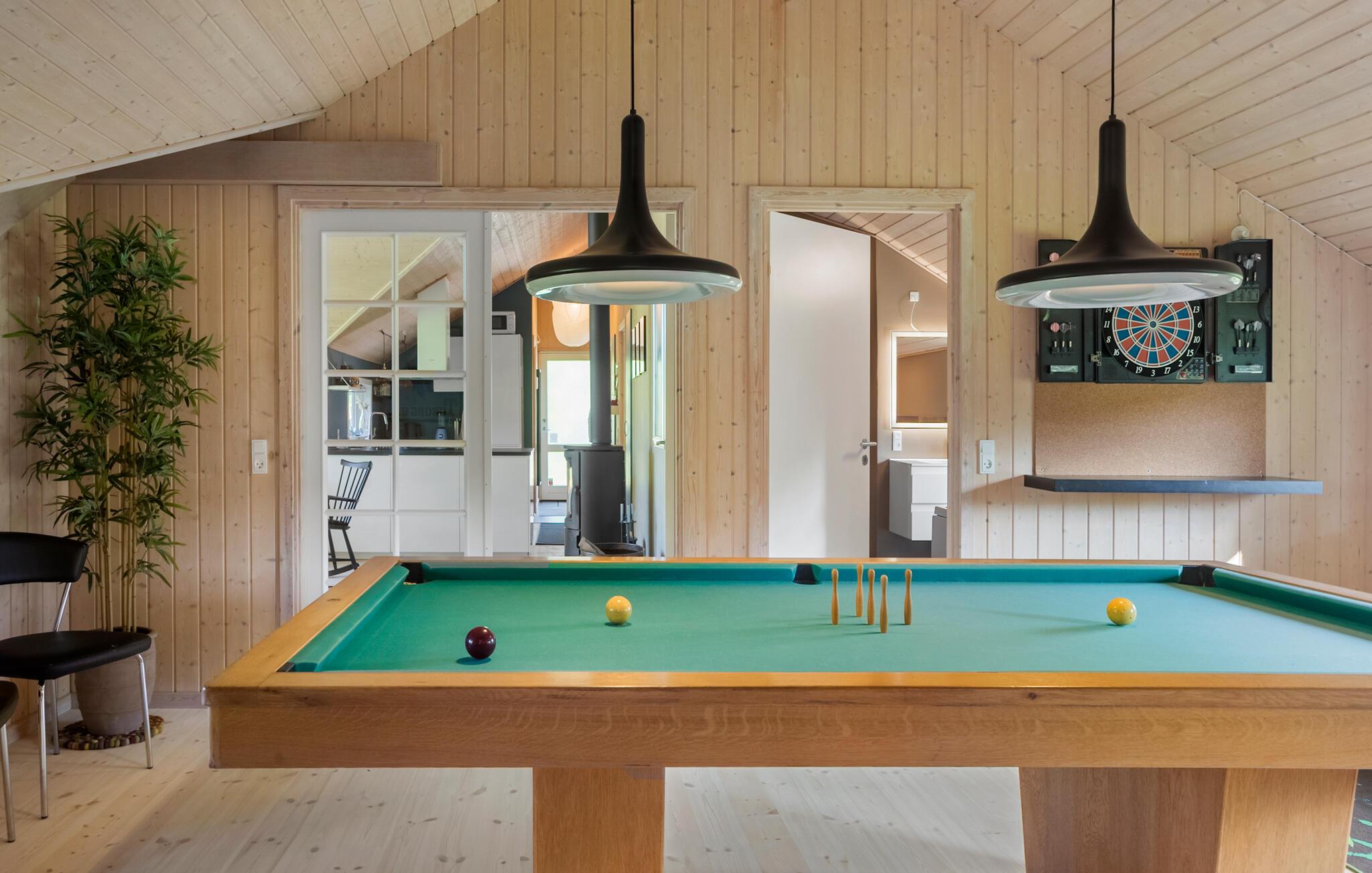 Willkommen in diesem gut ausgestatteten Ferienhaus, das Sie und Ihre Familie in einer gemütlichen Atmosphäre und mit vielen Einrichtungen für Groß und Klein erwartet. Sie finden mehrere gemütliche Schlafplätze in den Schlafzimmern und auf dem offenen Spitzboden. Mit seinen zwei schönen Badezimmern ist das Haus für einen Aufenthalt von zwei befreundeten Familien gut geeignet. Das geräumige Wohnzimmer liegt in offener Verbindung zur Küche und dem Esszimmer, von wo Sie eine angenehme Aussicht in den Garten haben. Im Aktivitätsraum können Sie sich am Pooltisch oder Dart schön unterhalten.