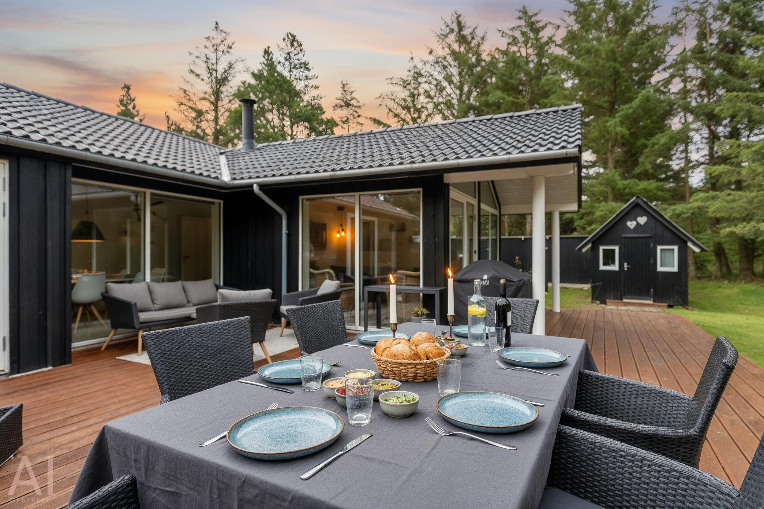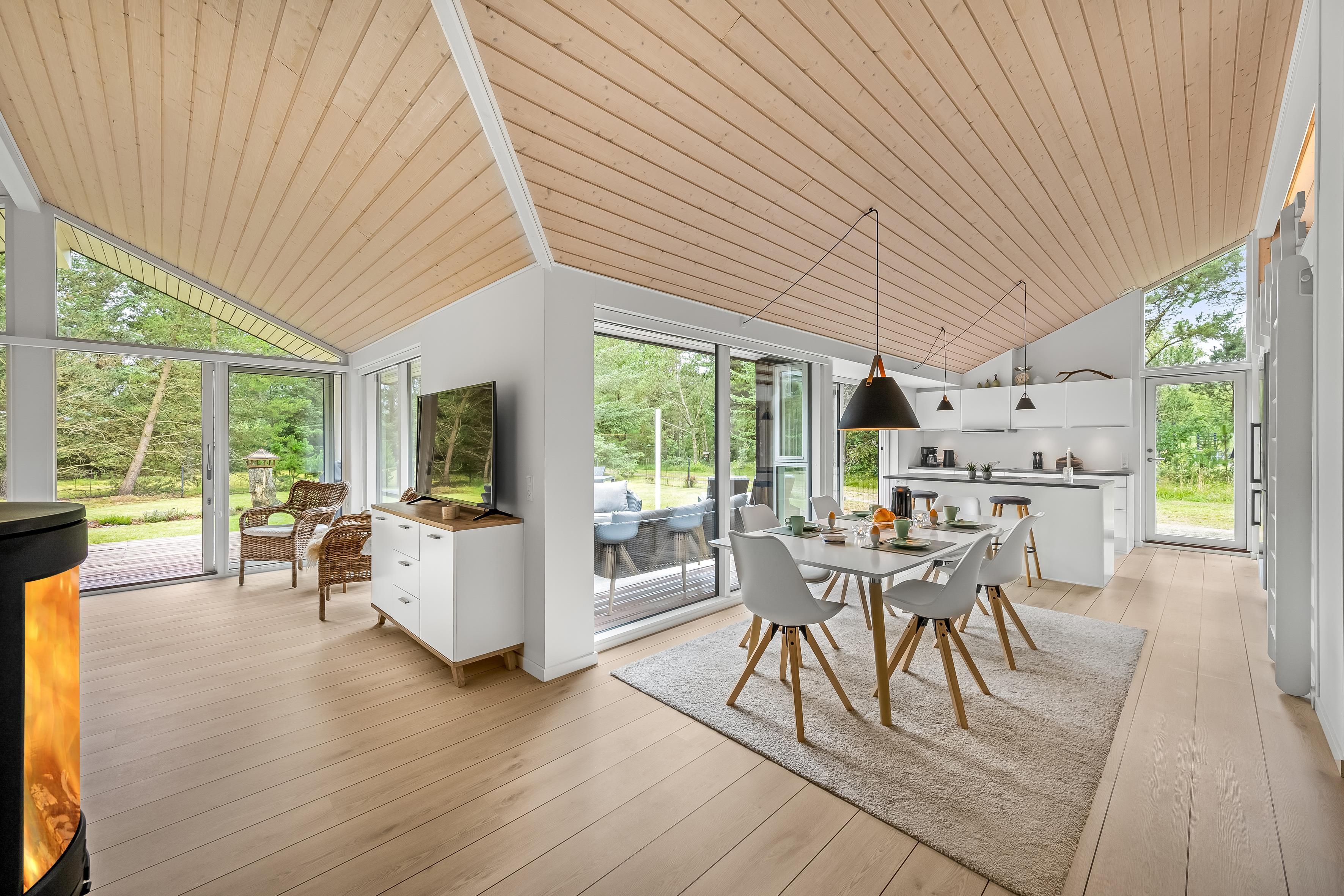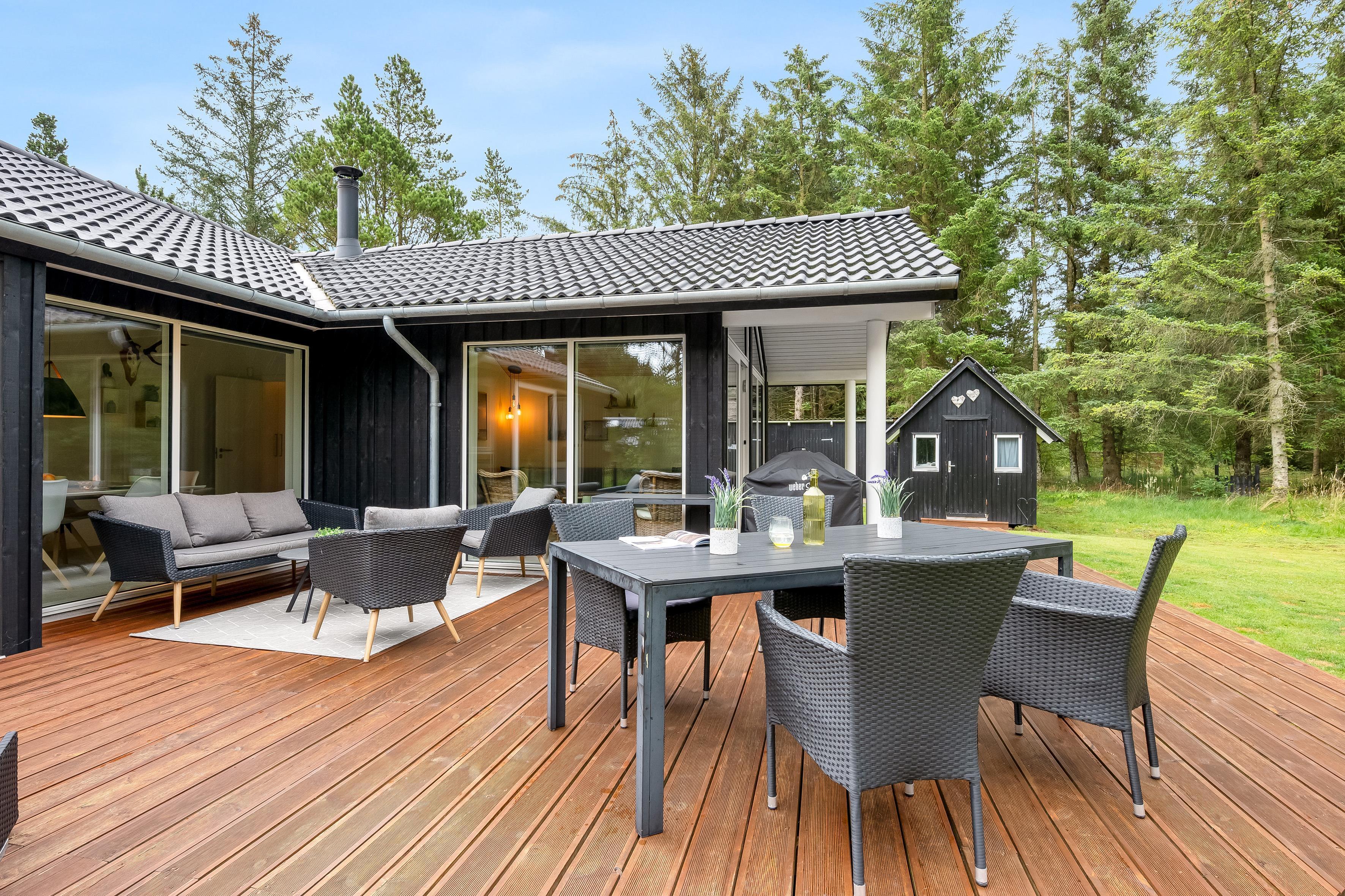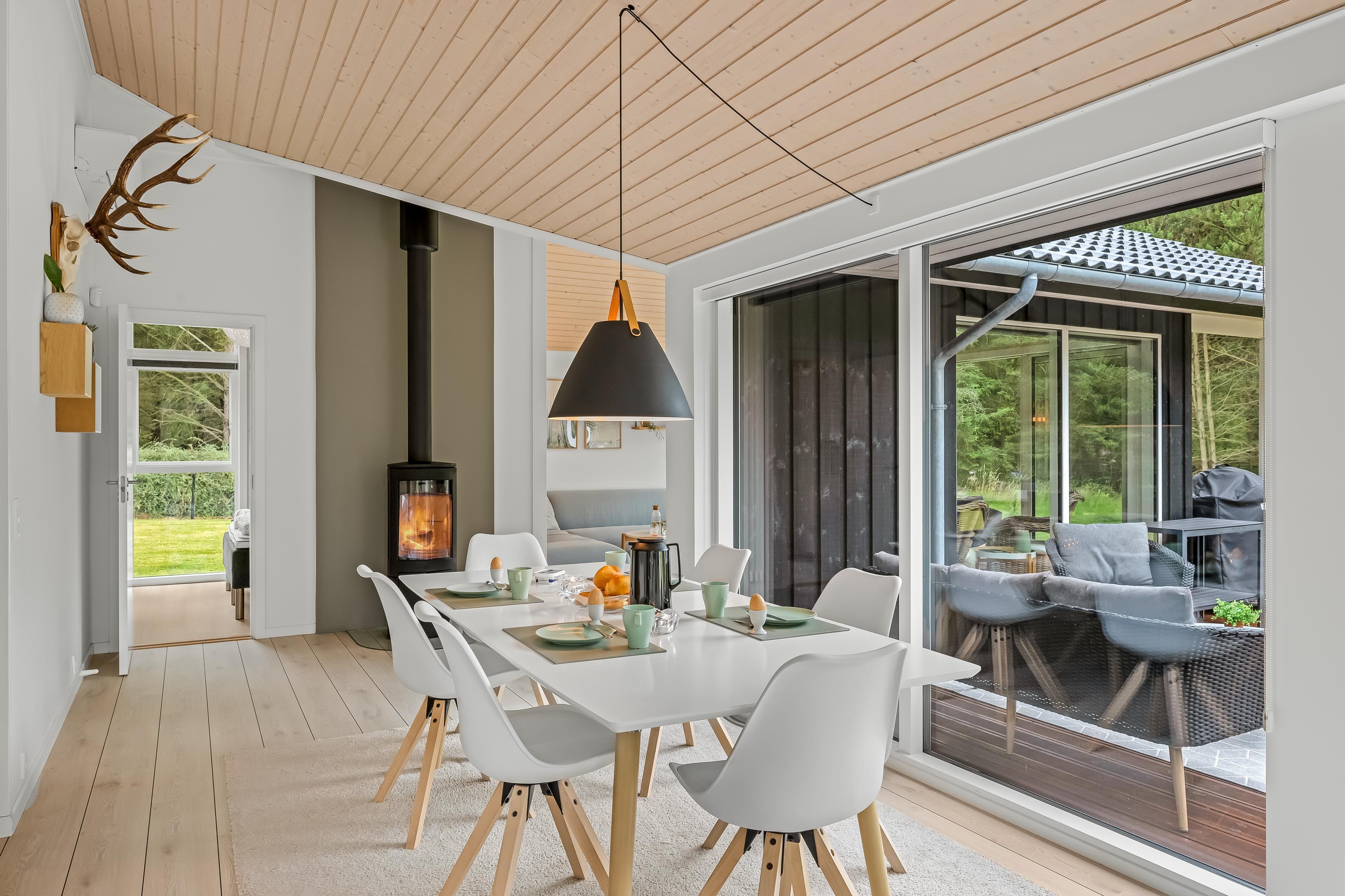 Egal bei welchem Wetter, die große, teilweise überdachte Terrasse ist der ideale Ort, um den Urlaub zu genießen. Hier können Sie die langen, hellen Sommerabende genießen, während Kinder sicher auf dem teilweise eingezäunten Grundstück, das über 2.500 m² groß ist, spielen. Sie sind hier der Natur ganz nah – erwarten Sie Besuche von neugierigen Rehen und Hirschen, die regelmäßige Gäste in der Gegend sind. Naturliebhaber werden es lieben, die nahegelegenen Waldgebiete zu erkunden und die reiche Tierwelt zu erleben.