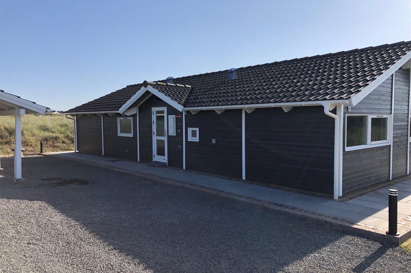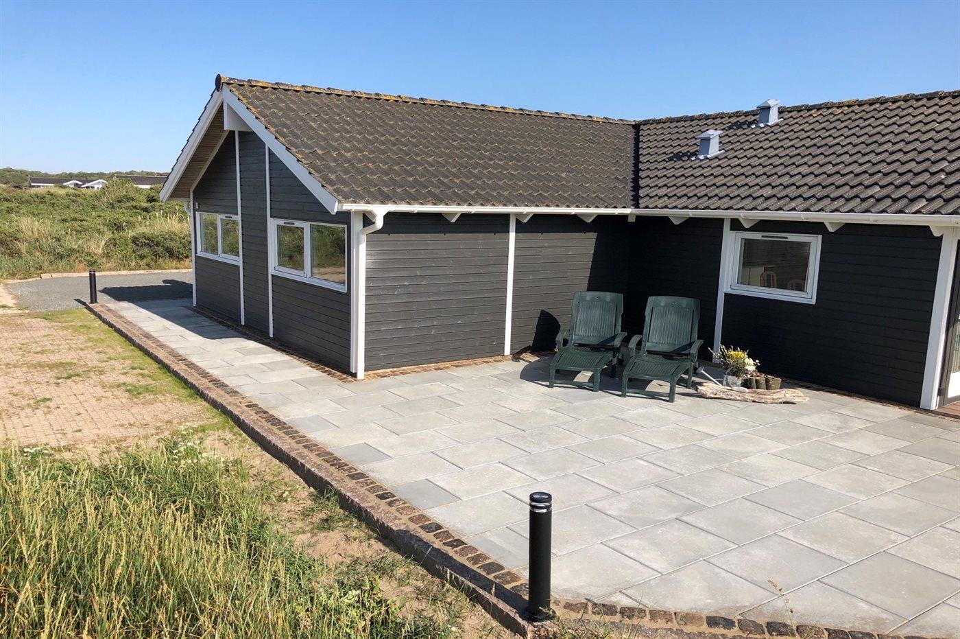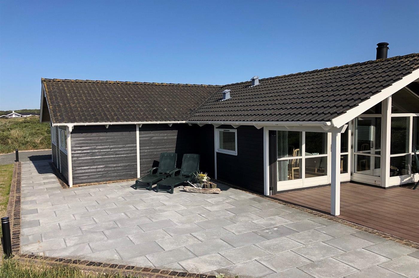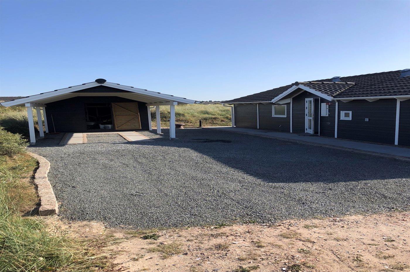 Die Ferienunterkunft liegt auf einem 1776 m² großen Dünengrundstück. Die Entfernung zum Meer beträgt 300 m. Die nächste Einkaufsmöglichkeit liegt 1500 m entfernt. Es steht ein 24 m² Terrassenareal zur Verfügung. Außerdem gibt es 15 m² überdachte Terrasse. Geräteraum. Es steht ein Carport zur Verfügung. Parkplatz auf dem Grundstück.