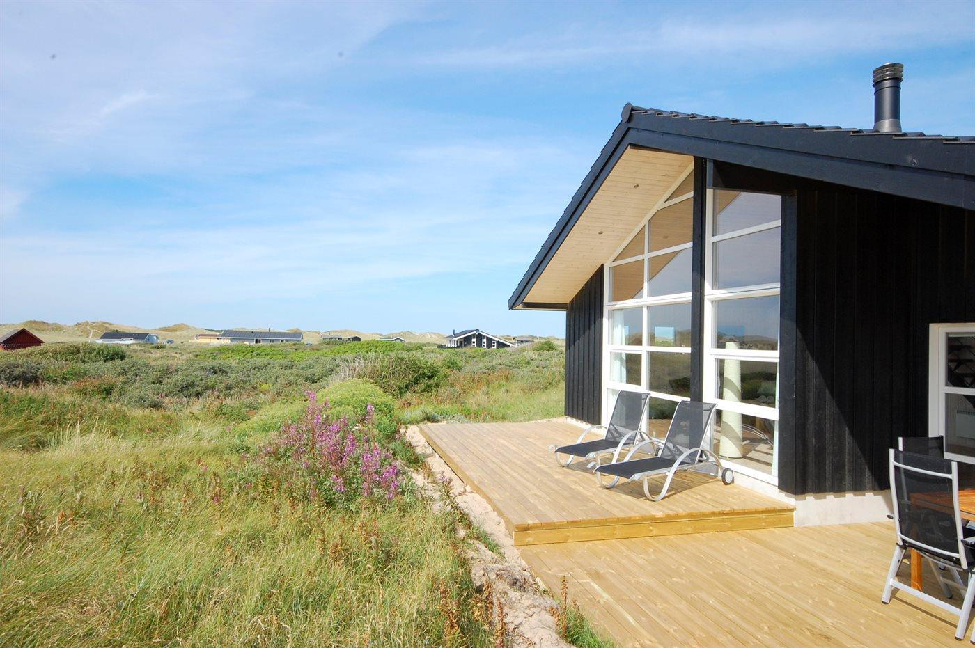 Die Ferienunterkunft liegt auf einem 1300 m² großen Dünengrundstück. Die Entfernung zum Meer beträgt 150 m. Die nächste Einkaufsmöglichkeit liegt 1500 m entfernt. Es steht ein 80 m² Terrassenareal zur Verfügung. Außerdem gibt es 20 m² überdachte Terrasse. Geräteraum. Sandkasten. Parkplatz auf dem Grundstück.