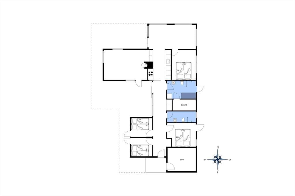 Das Ferienhaus ist unter Verwendung bester Materialien errichtet worden und entspricht den aktuellen Standards, ausgestattet mit geschmackvollen Möbeln, ausgezeichneten Betten und hochwertigen Haushaltsgeräten. Hier verbringen Sie einen Urlaub, der höchsten Qualitätsansprüchen genügt. Der Wohnbereich liegt versetzt und ist über zwei Stufen mit dem Essbereich und der Küche verbunden. Die großen Panoramafenster ermöglichen eine hervorragende Aussicht auf die abwechslungsreiche Natur rund um Nørlev. Mit einem knisternden Feuer im Kaminofen stellt sich schnell eine behagliche Atmosphäre ein. Beide Badezimmer sind mit einer Duschnische ausgestattet, das eine, darüber hinaus, mit Sauna und Whirlpool. Das Ferienhaus verfügt über alle modernen Ausstattungsmerkmale, die man heutzutage von einem neuwertigen Gebäude erwarten darf.