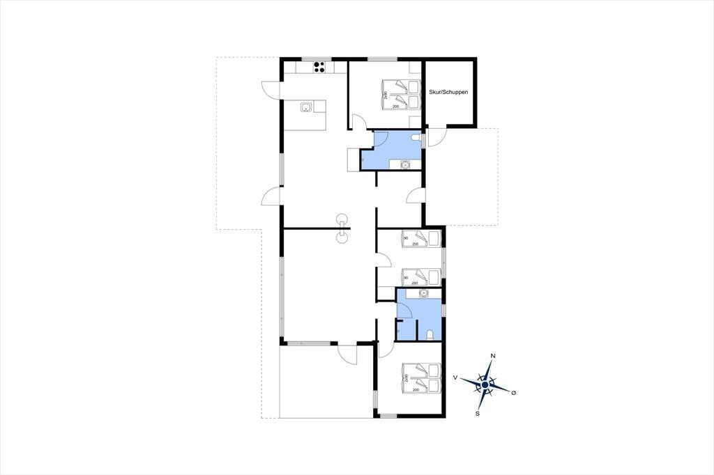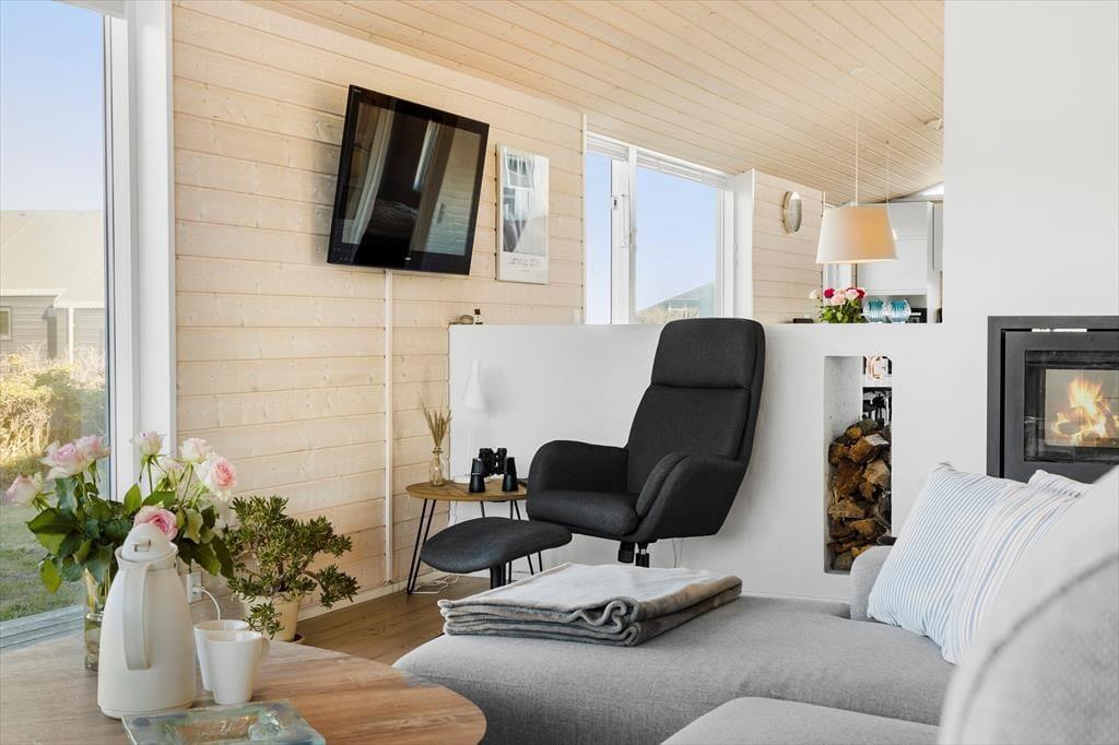 Bei diesem Urlaubsdomizil, das mit seiner schlichten und zeitlosen Architektur besticht, stimmt einfach alles. Im Innern des Hauses werden Sie unmittelbar nach dem ersten Betreten vom beeindruckenden Tageslichteinfall durch die großen Fensterpartien begeistert sein, der das geschmackvolle Interieur wunderbar in Szene setzt. Die Einrichtung wurde vom Hauseigentümer wohl durchdacht gewählt und bietet Ihnen beste Bedingungen für das gemütliche Beisammensein nach einem langen, erlebnisreichen Urlaubstag. Der Küchen- und Essbereich bildet eine offene und überaus harmonische Einheit mit dem attraktiven Wohnraum. In der Küche und im Wohnraum werden Sie darüber hinaus mit einem ansprechenden Blick auf das Meer verwöhnt. Der gemauerte, doppelseitige Kaminofen sorgt mit seinem romantischen Knistern und der heimeligen Wärme an kühlen Abenden für ein Maximum an echter dänischer Ferienhausgemütlichkeit. In der gut ausgestatteten Küche befindet sich ein Arbeitstresen mit Sitzgelegenheit, an dem Sie in Gesellschaft ein Glas Wein genießen können, während Ihr Abendessen auf dem Herd köchelt. Zur Wohnfläche zählen des weiteren drei komfortable Schlafräume und zwei Badezimmer mit je einer Dusche.
