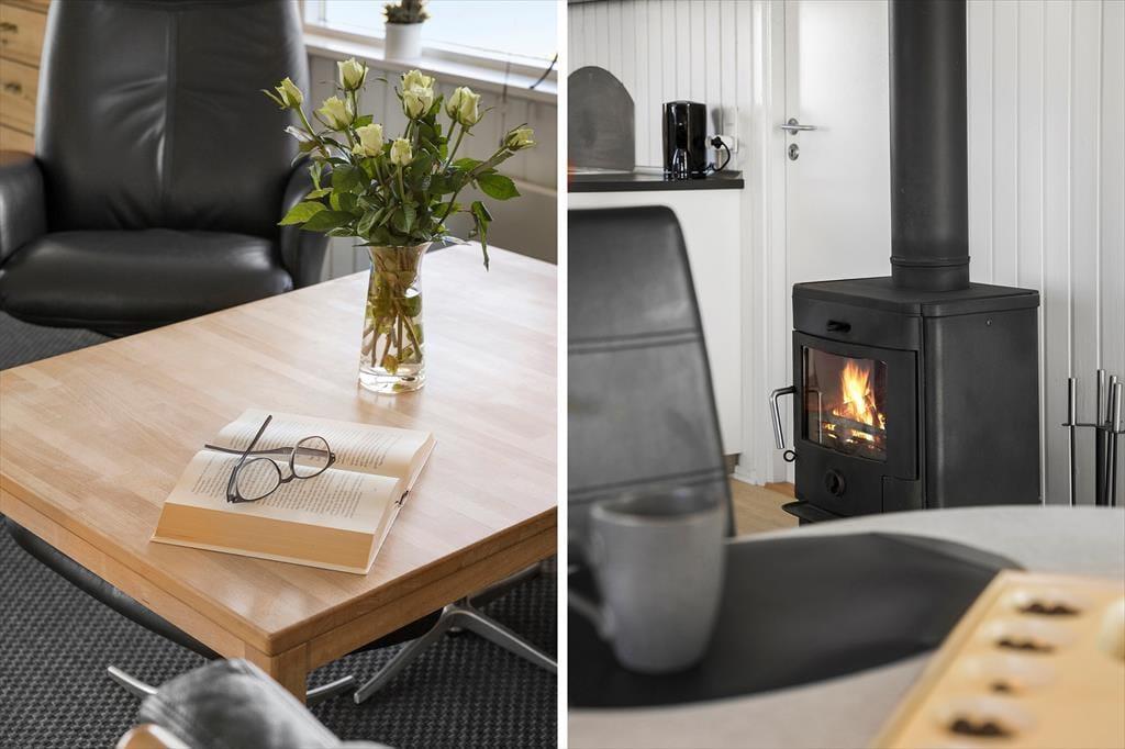 Das Haus ist innen hell und geschmackvoll eingerichtet mit gemütlichen Ecken und komfortablen Möbeln, die zu Ruhe und Geselligkeit einladen. Die Küche ist mit dem Essbereich und dem Wohnzimmer verbunden, was eine offene und einladende Atmosphäre schafft, in der man leicht zusammen sein und die Gesellschaft der anderen genießen kann. Ein zentral platzierter Kaminofen verbreitet Wärme und Gemütlichkeit im ganzen Haus, wenn die Abende kühler werden. Die drei Schlafzimmer, zwei mit Doppelbetten und eines mit einem Einzelbett, bieten viel Platz zum Entspannen und Erholen. Das Wohnzimmer ist ideal eingerichtet für sowohl ruhige Lesestunden als auch gemeinsame Aktivitäten.