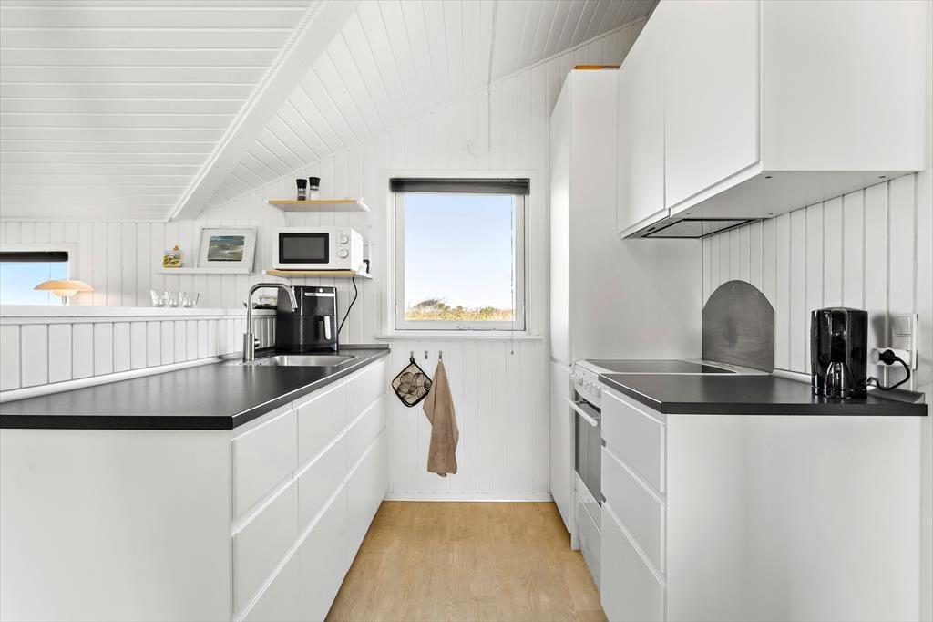 Das Haus liegt in Gehweite sowohl zum Strand als auch zum umliegenden Naturschutzgebiet. Hier können Sie schwimmen, am Wasser spielen oder die landschaftlich reizvollen Wege in den Inlanddünen erkunden, die eine ganz besondere Ruhe und Schönheit bieten. Wenn Sie Abwechslung suchen, ist das Skallerup Seaside Resort mit Pool und Aktivitäten für die ganze Familie nur eine kurze Fahrt entfernt. Für diejenigen, die das Stadtleben bevorzugen, ist die charmante Stadt Lønstrup ebenfalls in der Nähe, wo Sie Restaurants, Cafés, Geschäfte und Galerien mit hochwertigem Kunsthandwerk finden. Hier können Sie eine Mahlzeit oder ein Getränk genießen, sowohl drinnen als auch draußen, je nach Wetterlage.