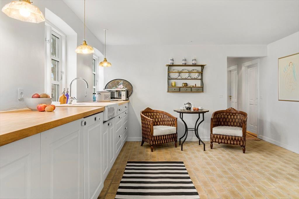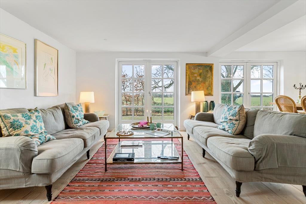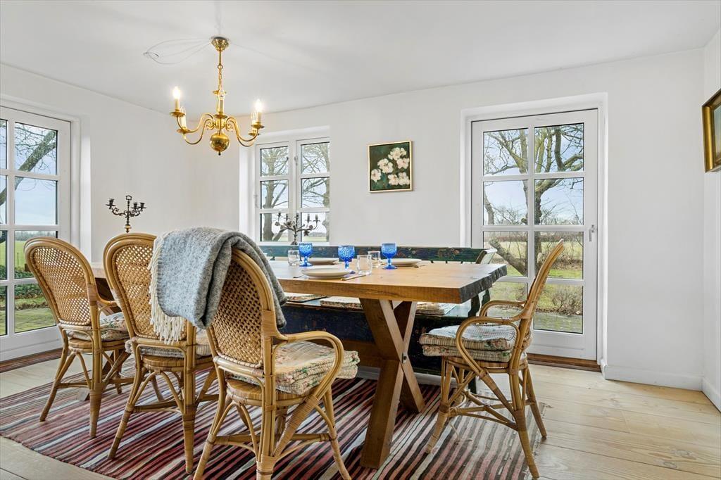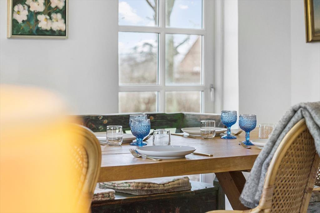 Dieses Ferienhaus im nördlichen Teil Samsøs bietet dir das komplette Insel-Erlebnis mit purer Erholung, reiner Gemütlichkeit und herrlicher Natur direkt vor der Haustür. Das Haus wurde in einem hellen und einladenden Stil restauriert. Du darfst dich somit auf einen tollen Rahmen für gelungene Urlaubstage auf Samsø freuen. Der Wohnraum bietet ausreichend Platz für alle Mitreisenden. Du kannst es dir mit deinen Lieben in der weichen Polstersitzgruppe mit einem unterhaltsamen Spiel gemütlich machen oder rund um den Esstisch angeregte Gespräche und gemeinsame Mahlzeiten genießen. Die Wohnraumfenster an der Süd-Ost-Seite verwöhnen mit Aussicht über die Felder bis ganz zum Meer in rund 1,2 Kilometern Entfernung. Im Wohn- und Essbereich verbringt ihr wertvolle gemeinsame Zeit, selbst wenn ihr euch mit ganz unterschiedlichen Dingen beschäftigt.