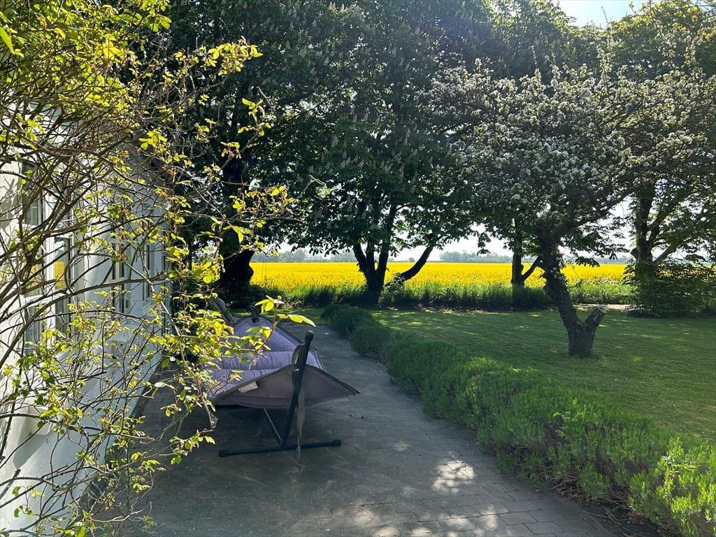 In dem von Bäumen und Büschen umgebenen Garten hältst du dich mit deiner Familie gänzlich ungestört auf und wirst mit Aussicht auf offene Felder und das Meer an der Ostküste Samsøs verwöhnt. An die Ost- und die Südseite des Mietobjekts schließen gute, gepflasterte Terrassen auf denen du morgens und nachmittags viel Sonne genießt.