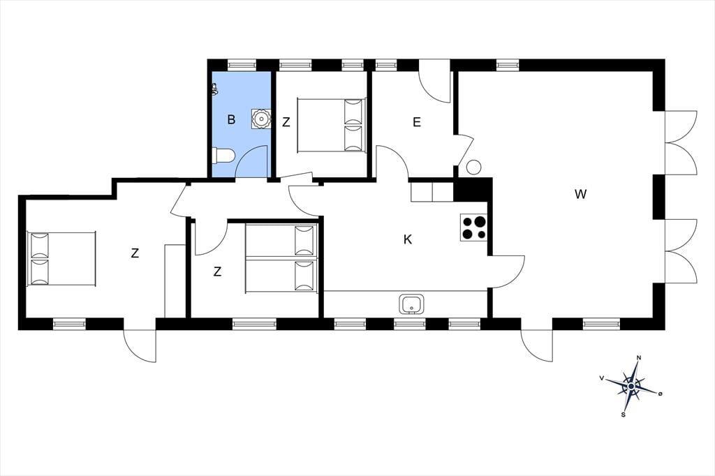 Die Küche führt dich weiter zu den drei Schlafräumen und zum Badezimmer. Die geräumigen Schlafräume sind allesamt mit je einem Doppelbett eingerichtet. Sie verfügen über Stauraum und einem Fenster in Richtung Garten. Aufgrund der überaus friedvollen Lage werdet ihr hier nach einem erlebnisreichen Tag wunderbar schlafen.