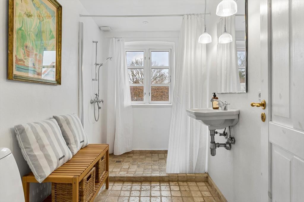Zwischen den drei Schlafräumen liegt - gut erreichbar für alle - das Badezimmer. Das ansprechende Badezimmer wurde einer Renovierung unterzogen und harmoniert sehr schön mit den anderen gemütlichen und schön eingerichteten Räumlichkeiten.1