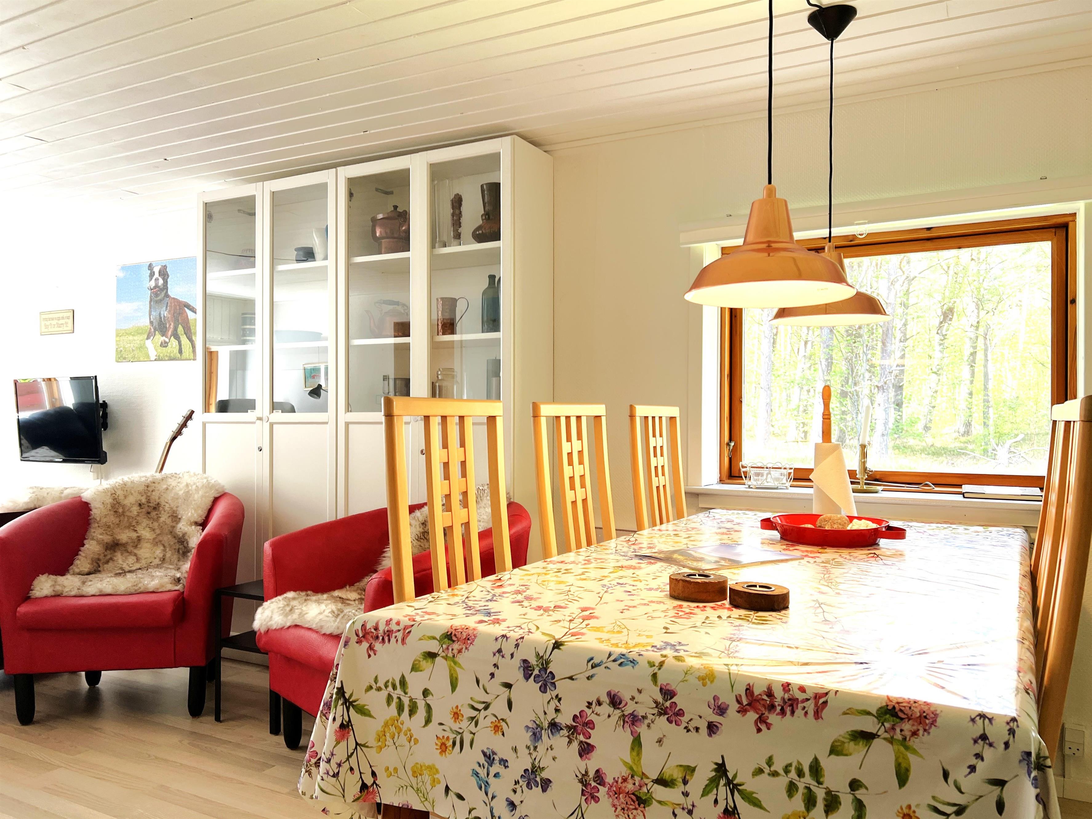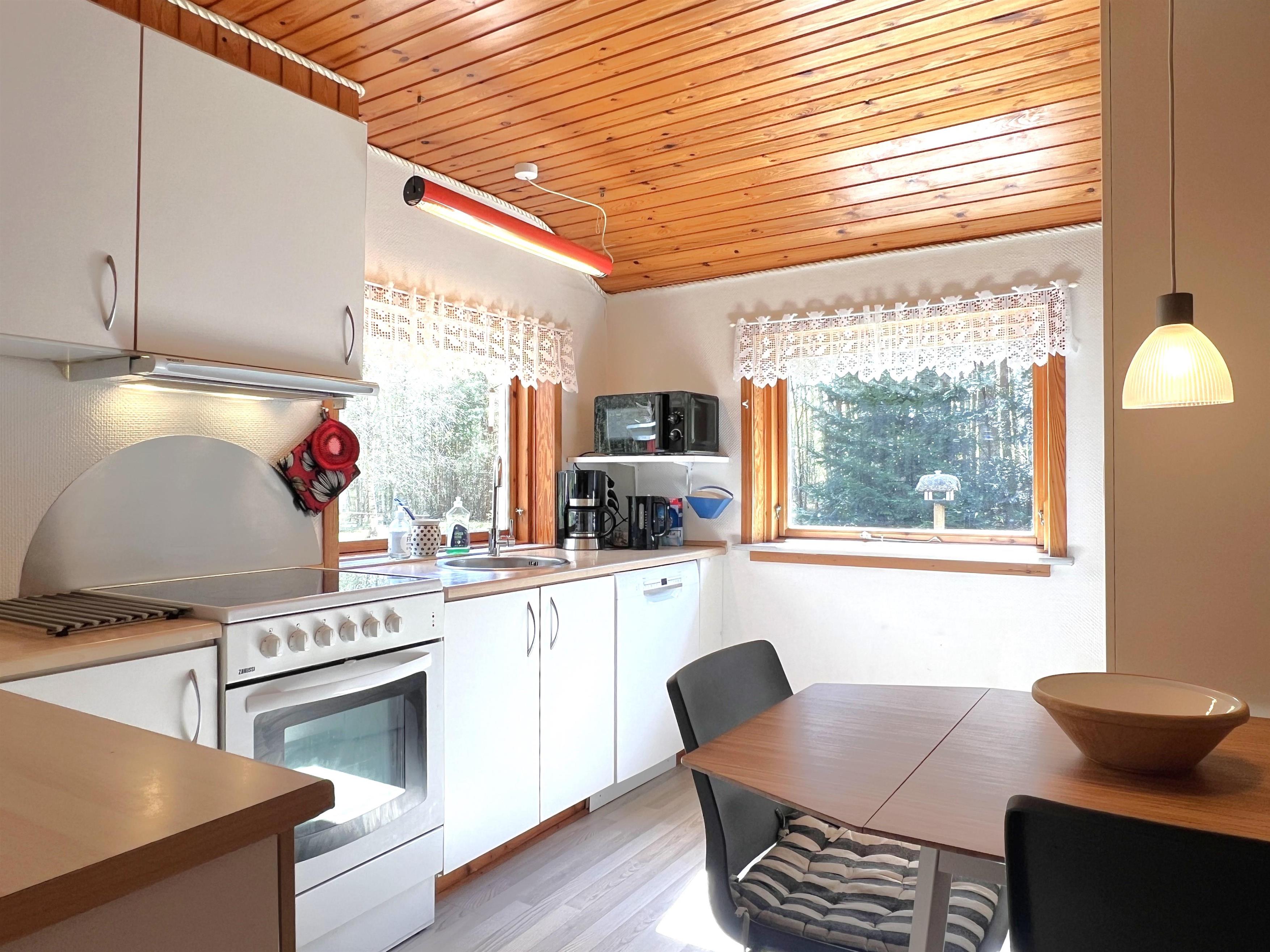 Dieses herrliche Ferienhaus, dass an einer einmaliger Lage liegt, finden sie die Ruhe von Læsø. Mitten in Nordmarkens schönem Birkenwald, und in gehabstand zum Wattenmehr Bouet, liegt Hals Kirkevej 2. Der Grund vom Haus geht bis zum Linienvejen, und die 14000 m2, sichern für Familien und Vierbeiner Ruhe und Platz. Ca 5000 m2 sind eingezeunt, so das Kinder und Hunde sich frei und sicher bewegen können. Hunde sowie Katzen sind Willkommen. Das Haus hat 3 gute Schlafzimmer, eines mit Hochbett, wobei das untere für 1,5 Personen geignet ist, eines mit 2 Einzelbetten, und eines mit neuem Doppelbett ( zwei Einzelbetten die zusammengestellt sind). Beim letzten erwähnten Zimmer, gibt es einen direkten Ausgang zur Terrasse. Den Grill kann mitbenutzt werden, und dabei können sie die Aussicht auf den schönen Garten und der charmanten Natur geniessen. Das Haus hat eine gute Küche, mit Spülmaschine. Ein recht kleines Badezimmer mit Dusche, einen Aufenthaltsort mit Sitzgelegenheit mit Tv via Chromecast und Essplatz. Zudem hat es einen ganz neuen Holzofen und Wärmepumpe. Im kleinen Raum ausserhalb hat es Waschmaschine und Tumbler. Nahe vom Ferienhaus liegt der 18 Loch Golfplatz und es sind nur 3.5 km zum gemütlichen Hafenviertel, mit Geschäften, Restaurants, Einkaufsmöglichkeiten und Fischhändler mit frischem Fang.