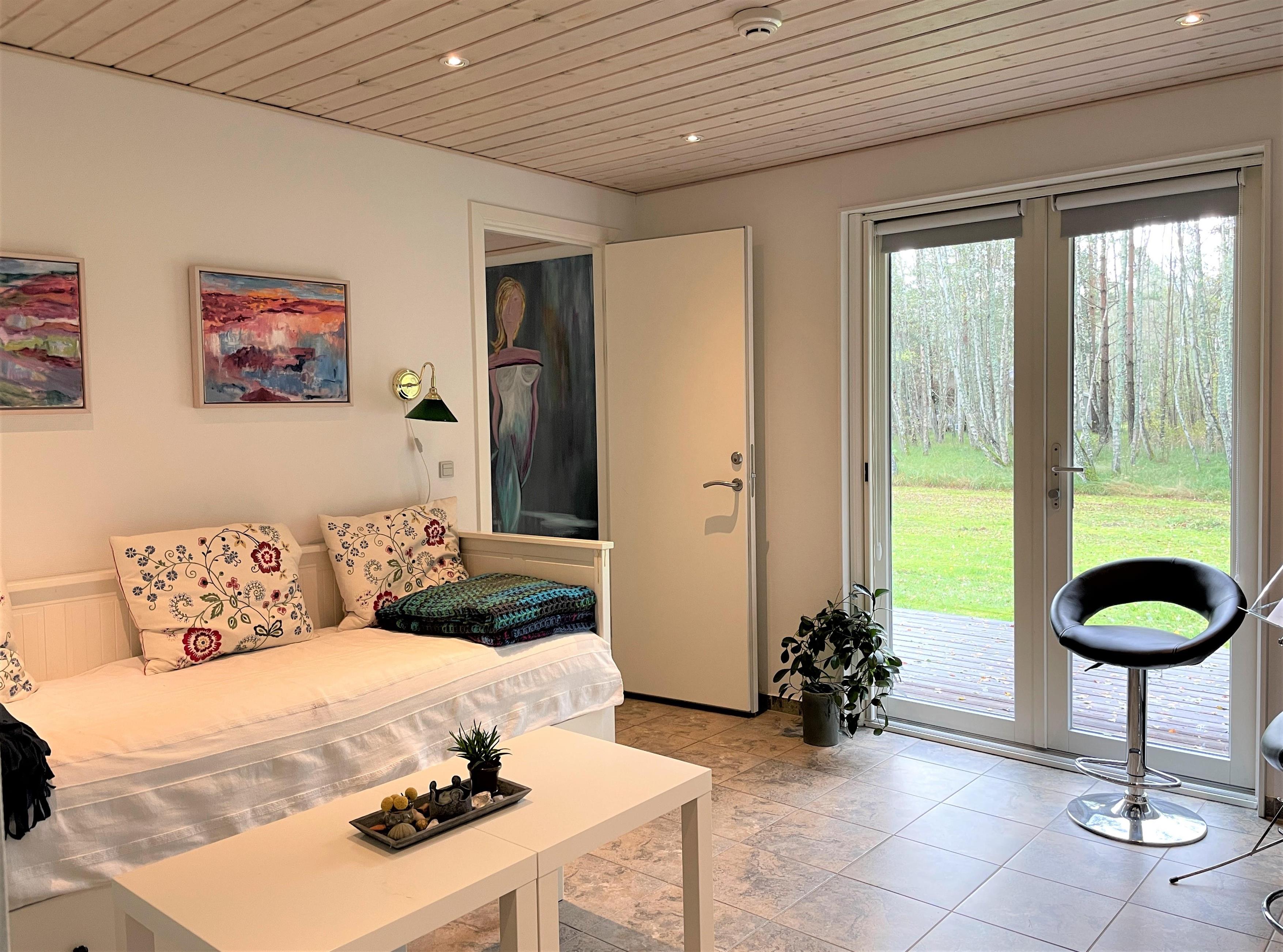Modernes Ferienhaus in Nordmarken mit Sauna, Kamin, Internet und Nähe zu Golfplatz und Strand.