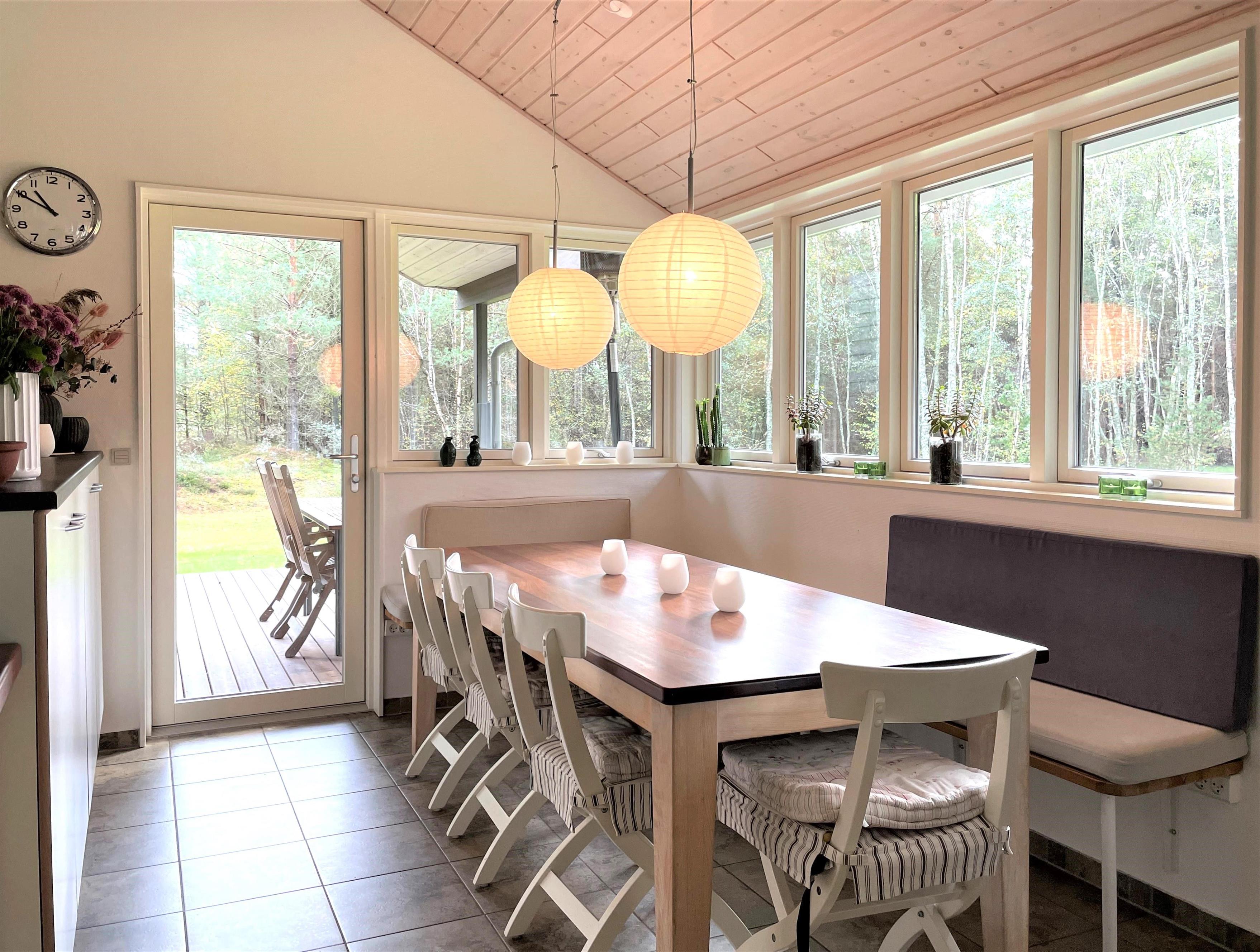 Das Ferienhaus hat eine schöne Küche, gemütliches Wohnzimmer mit Kaminofen, zwei Badezimmer, das eine mit Sauna,fünf Schlafzimmer ,zwei mit Dobbeltbetten, zwei mit Etagenbetten und eins mit Einzelbett.Internet und deutsches Fernsehprogramm. Das Ferienhaus hat eine überdachteTerrasse, liegt in Nordmarken, das Waldgebiet zwischen Österby und Laesö Klitplantage. Kurzer Weg zum Golfplatz und Österby,wo Sie Einkaufsmöglichkeiten, Restaurants,Jachthafen und einen schönen Badestrand finden.