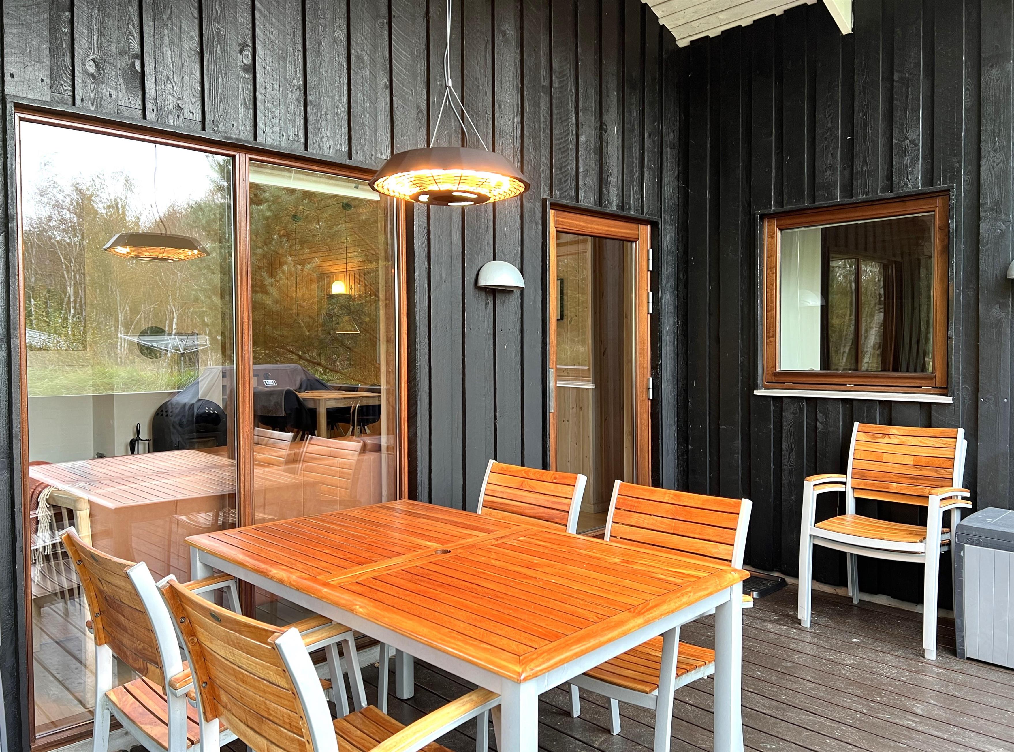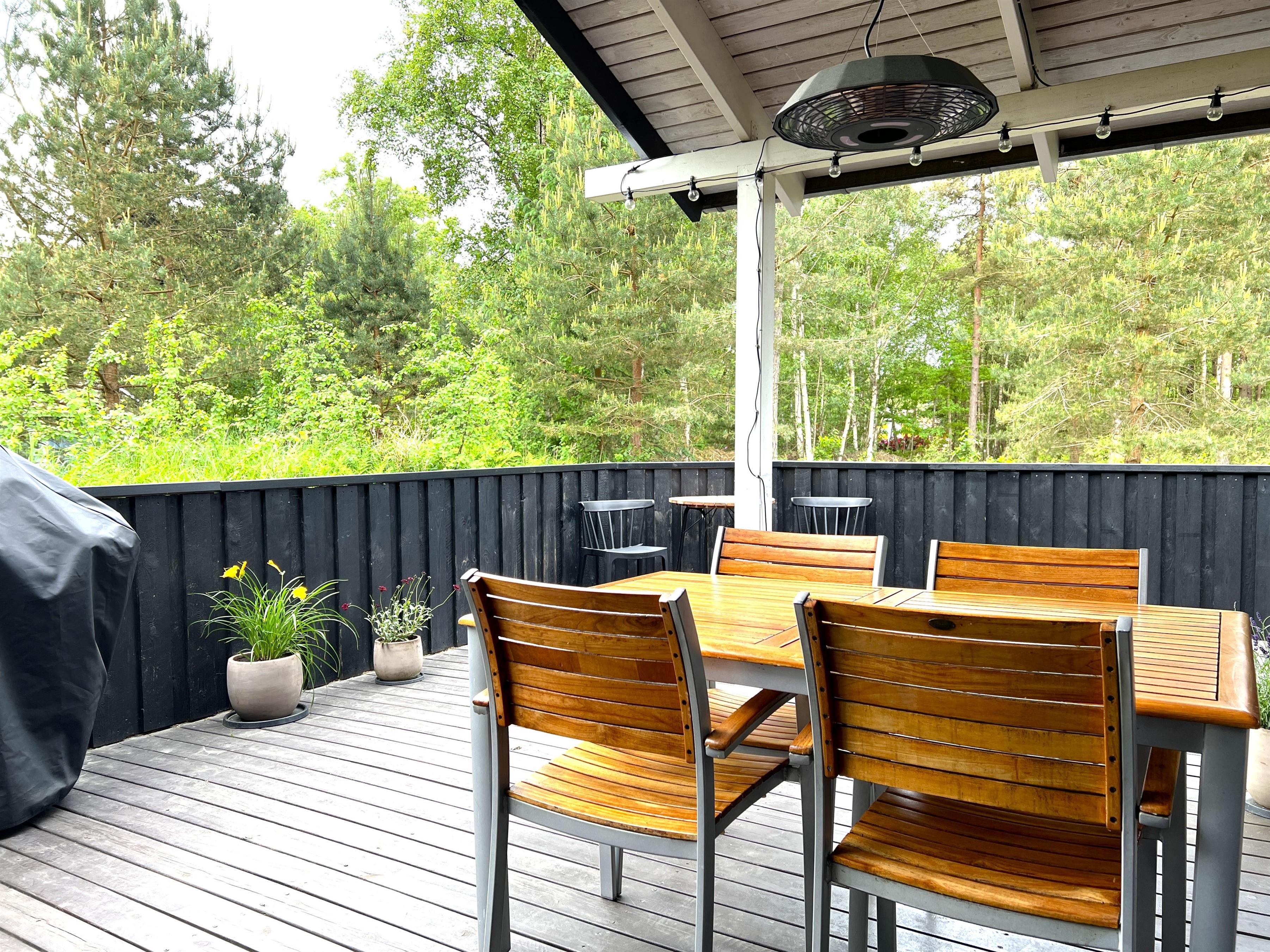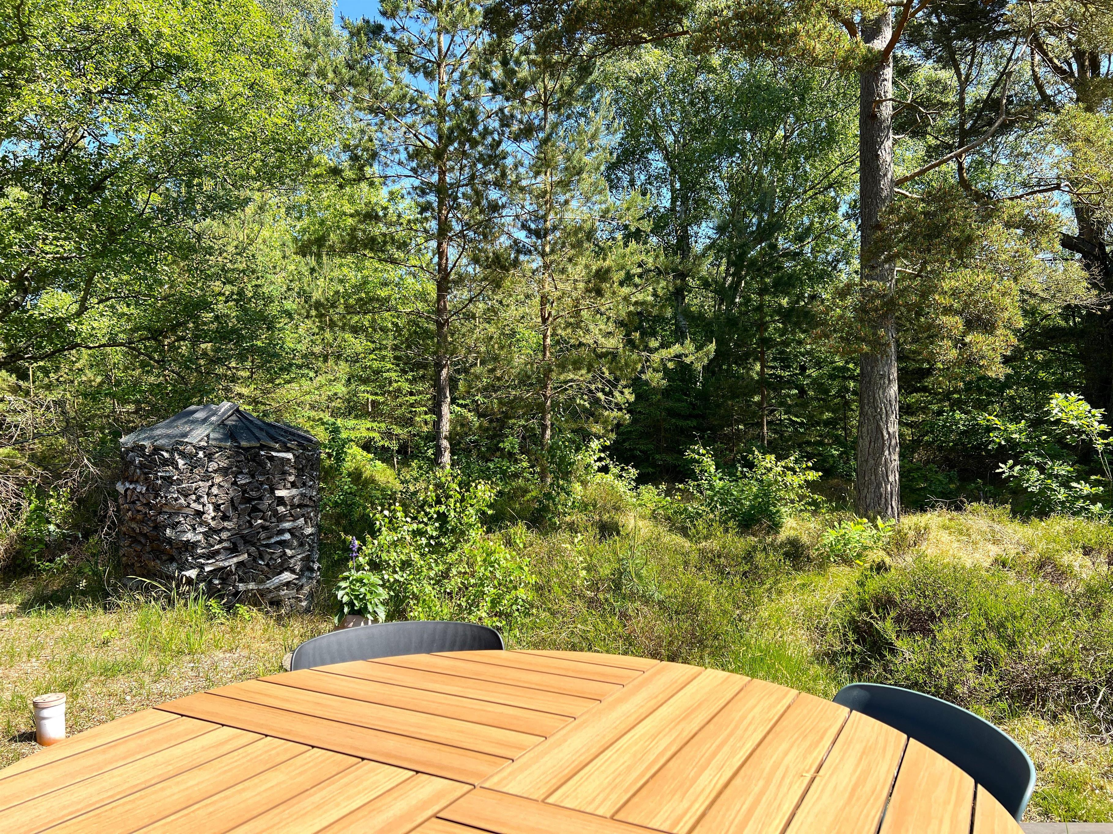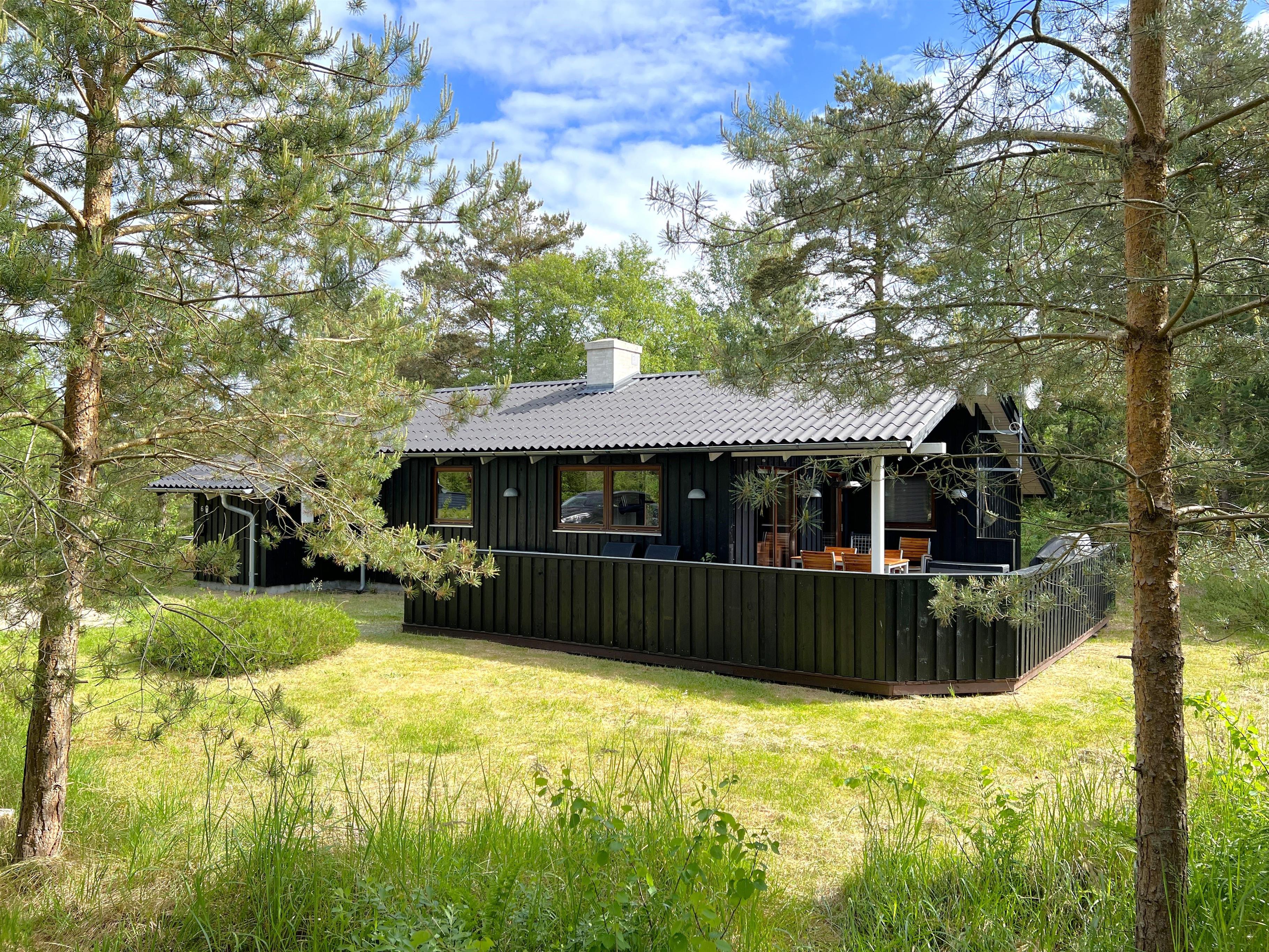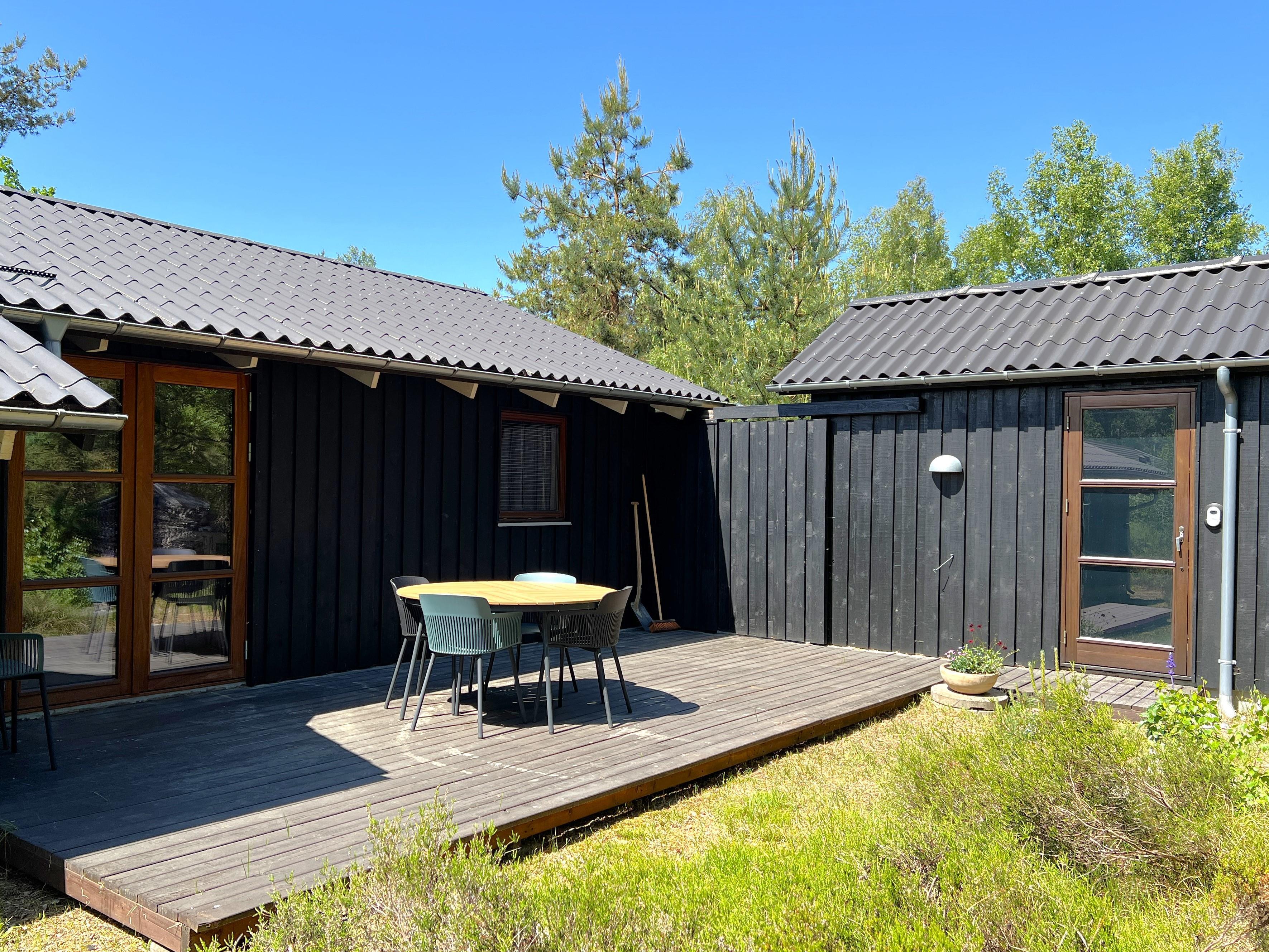Ein traumhaft schönes und gepflegtes Ferienhaus in malerischer Wald- und Heidelandschaft bei Nordmarken. Das Haus verfügt über eine schöne, große und bestens ausgestattete Küche mit offenem Zugang zum Esszimmer. So können Sie sich beim Kochen über die halbhohe Wand hinweg angeregt unterhalten. Der gesamte Wohnbereich ist lichtdurchflutet und hat eine Dachschräge. Neben einem modernen Badezimmer mit Dusche und Fußbodenheizung bietet das Haus drei Schlafzimmer mit Doppelbetten und ausreichend Stauraum. Im Zentrum befindet sich das Wohnzimmer mit komfortablen Möbeln, einem Kaminofen und einem brandneuen, großen Fernseher. Die stilvolle Einrichtung stammt von der dänischen Marke HAY. Sowohl vom Esszimmer als auch vom Wohnzimmer aus gelangt man auf große Holzterrassen mit Gartenmöbeln und Sonnenliegen. Ein Teil der Terrasse ist überdacht, wo der neue, große Gasgrill ganzjährig genutzt werden kann. Die Terrassenheizung sorgt für besonders lange, gemütliche Abende. Genießen Sie Ihren Morgenkaffee auf der nach Osten ausgerichteten Terrasse des Hauses, wo die Heide im August in voller Pracht erblüht.