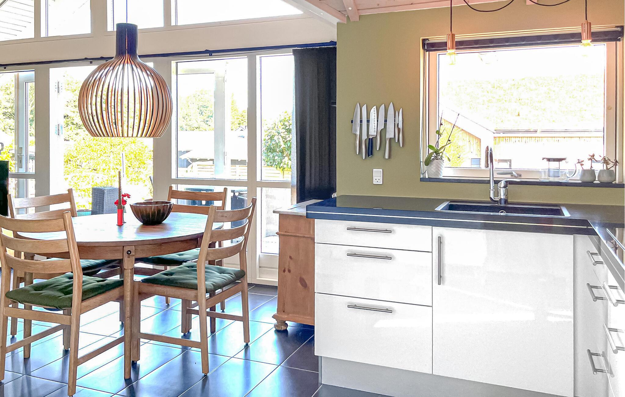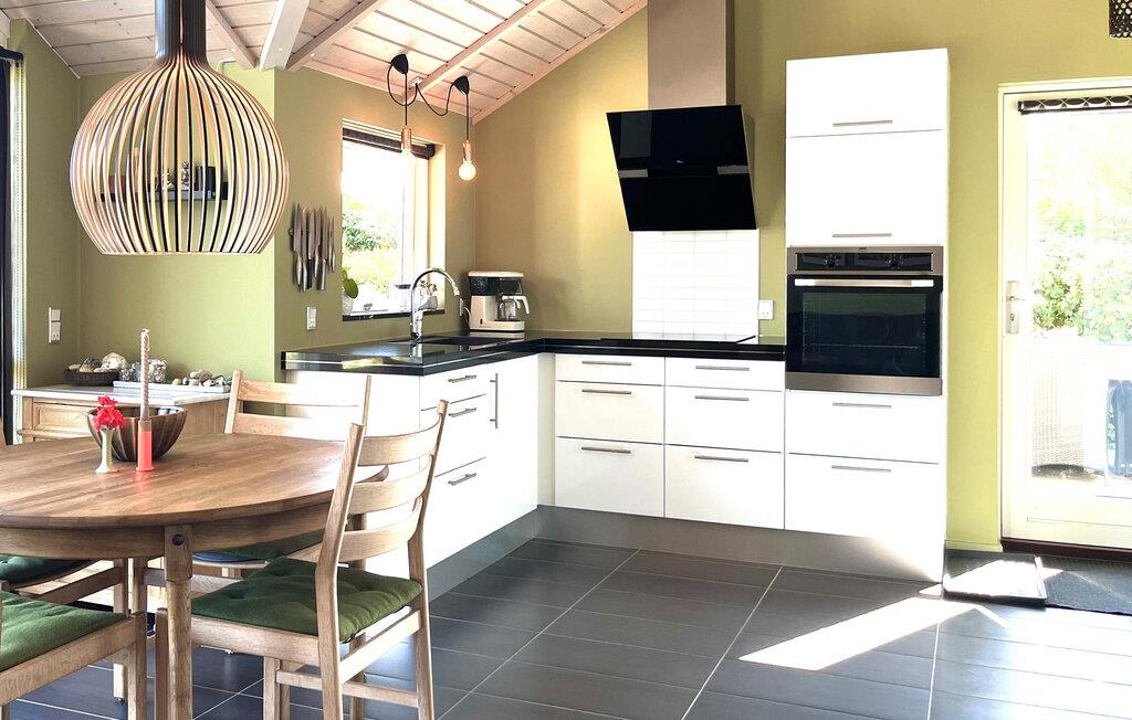 Von hier aus treten Sie auf die Terrasse mit Gartenmöbeln und Grill für die hellen Sommerabende. Lassen Sie die Kinder sich im Garten austoben, während Sie unter dem Parasol eine kalte Erfrischung genießen.