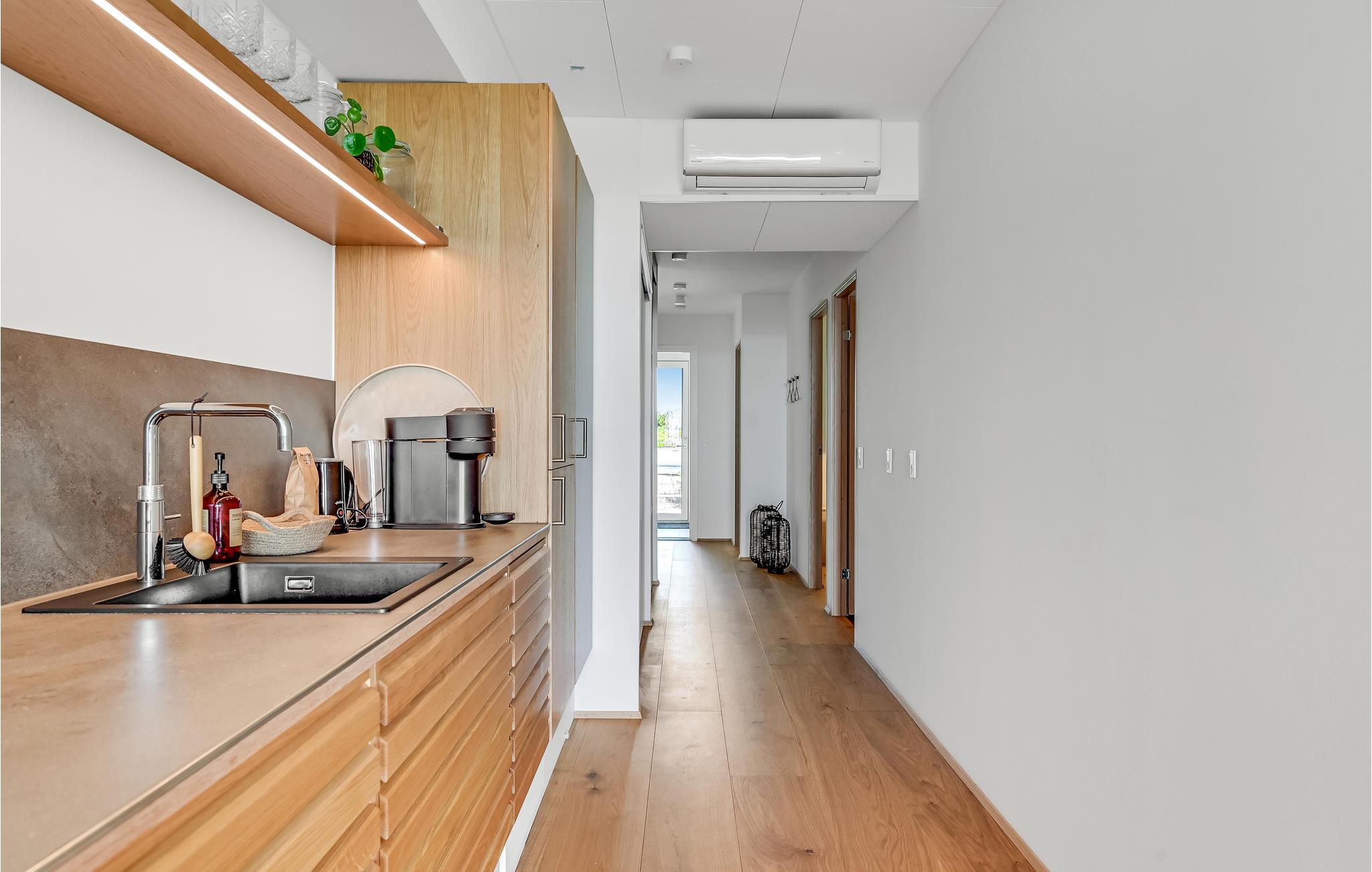 Damit sind Sie für fantastische Tage auf Fünen gerüstet, wo Sie in der Bucht von Kerteminde eine wirklich wunderbare Lage erwartet. Hier ist diese schöne Wohnung, die mit qualitativen Lösungen eingerichtet ist. Natürliche Materialien, eine angenehme Farbgebung und viel Licht durch die Fenster sorgen für einen ruhigen und harmonischen Rahmen für Ihren Aufenthalt. Das Beste von allem ist der atemberaubende Blick auf das blaue Wasser der Bucht, den Sie beim Kochen, beim Entspannen im Wohnzimmer oder bei einem Kaffee auf dem Balkon am Morgen genießen können.