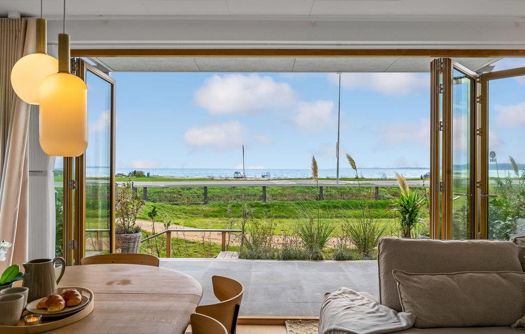 Erleben Sie eine moderne Wohnung mit Panoramablick an der Kerteminde-Bucht, nur 25 Meter vom Strand entfernt.