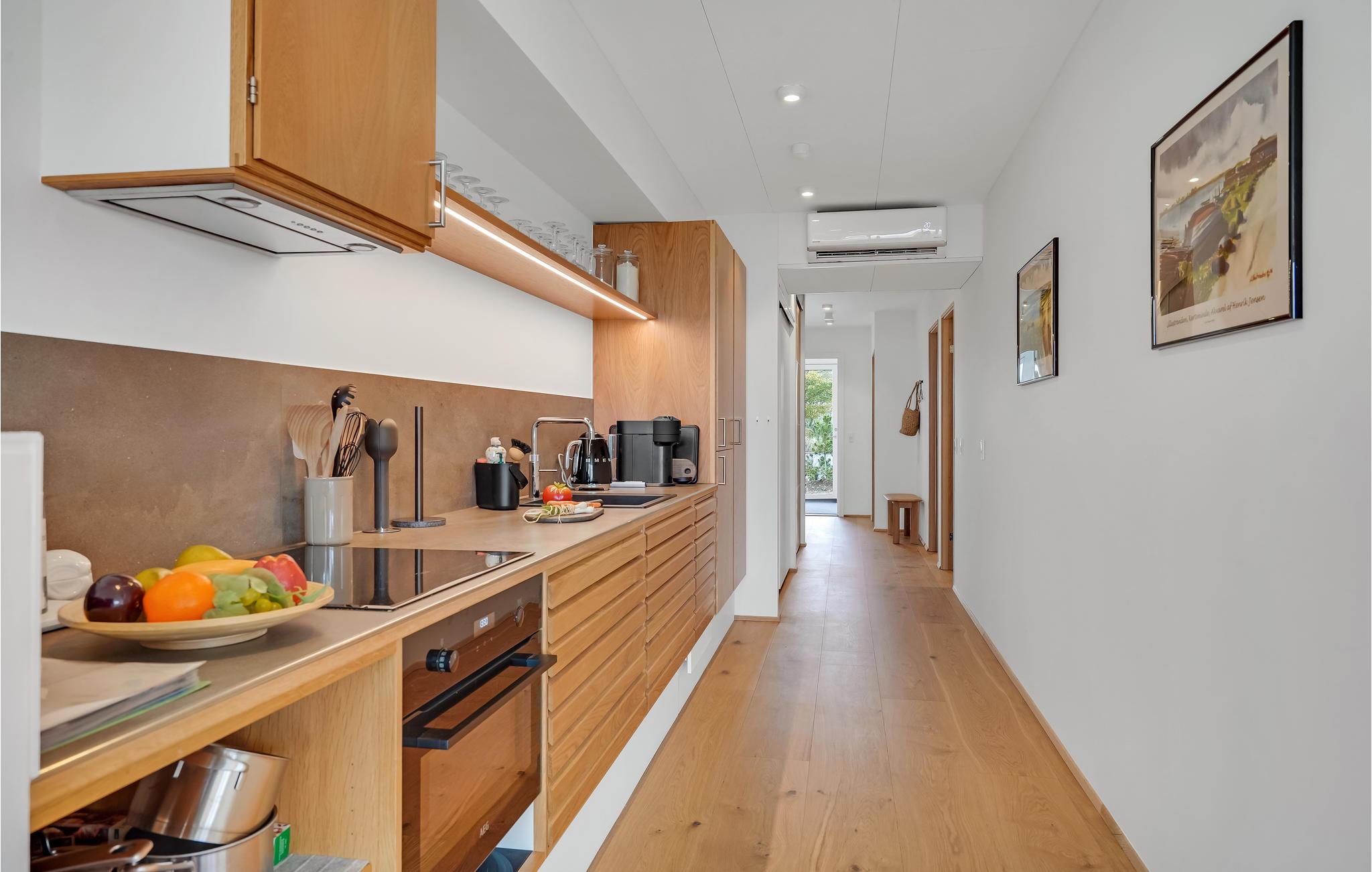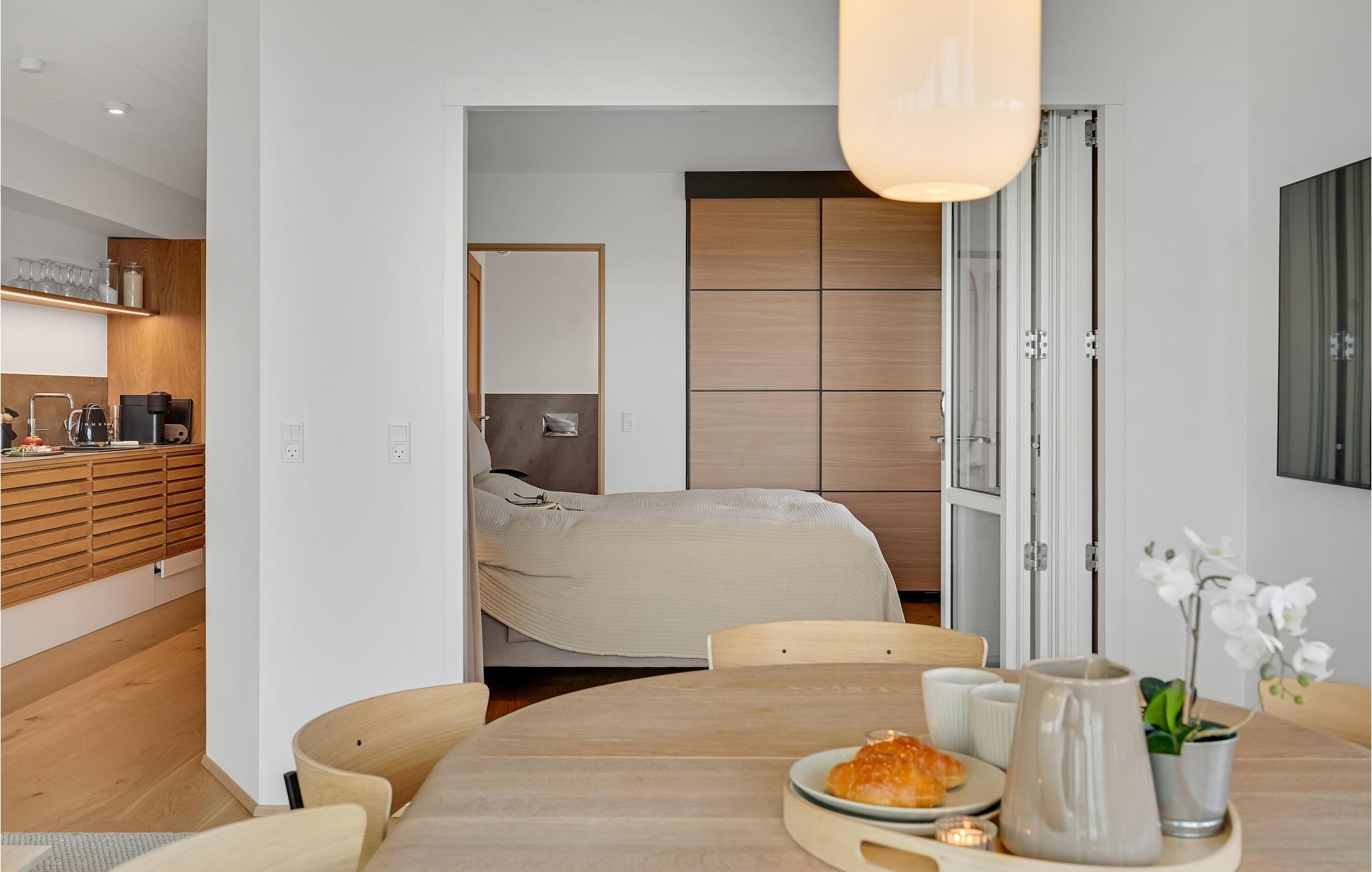 Seien Sie auf fantastische Tage auf Fünen eingestellt, wo Sie sich auf eine wirklich wunderbare Lage an der Kerteminde-Bucht freuen können. Hier ist diese schöne Wohnung, die mit guter Qualität Lösungen im gesamten eingerichtet ist. Natürliche Materialien, eine angenehme Farbgebung und viel Licht durch die Fenster sorgen für einen ruhigen und harmonischen Rahmen für Ihren Aufenthalt. Das Beste von allem ist der atemberaubende Blick auf das blaue Wasser der Bucht, die Storebælt-Brücke und das Treiben auf dem Wasser, den Sie beim Kochen, beim Entspannen im Wohnzimmer oder bei einer Tasse Kaffee auf dem großen Balkon am Morgen genießen können.