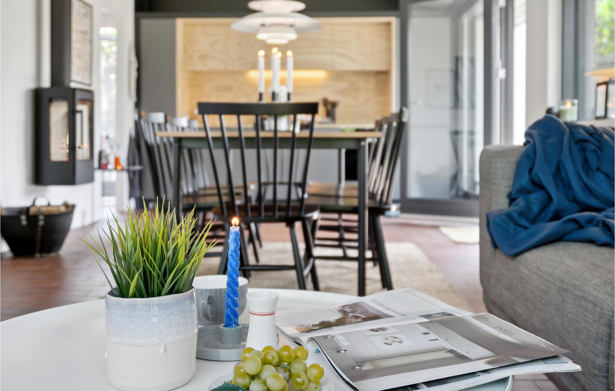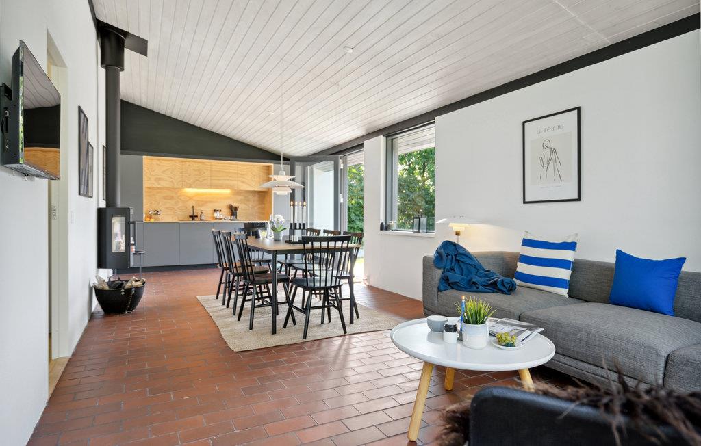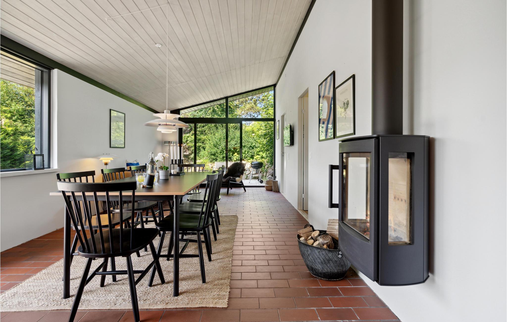 Stilvolles Ferienhaus in Norsminde nahe Sandstrand mit Garten, Kaminofen und moderner Ausstattung für erholsame Urlaubstage.