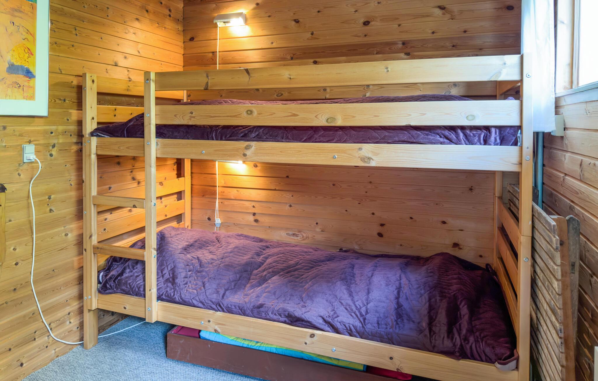 Ihr gemütliches Ferienhaus mit einer hellen Küche und Fjordblick aus dem Wohnzimmer empfängt Sie zu angenehmen Urlaubstagen. Vom Wohnzimmer gelangen Sie auf die überdachte Terrasse.