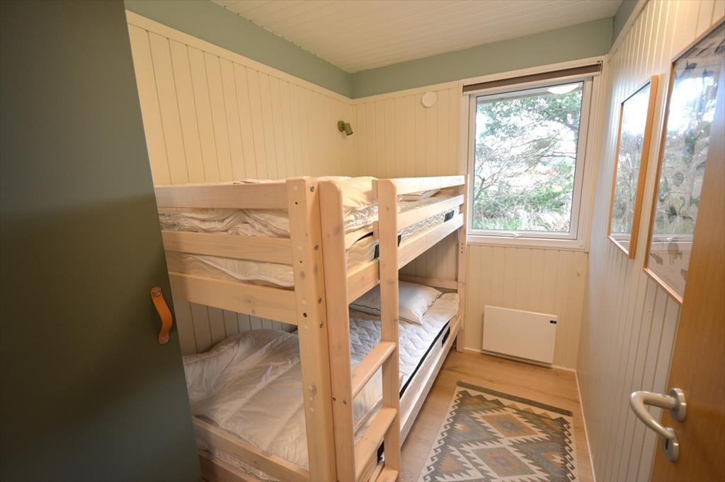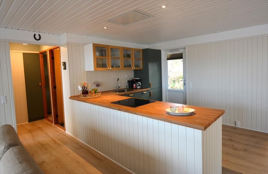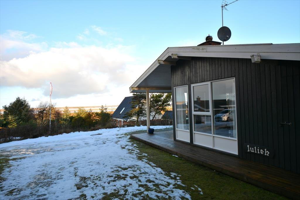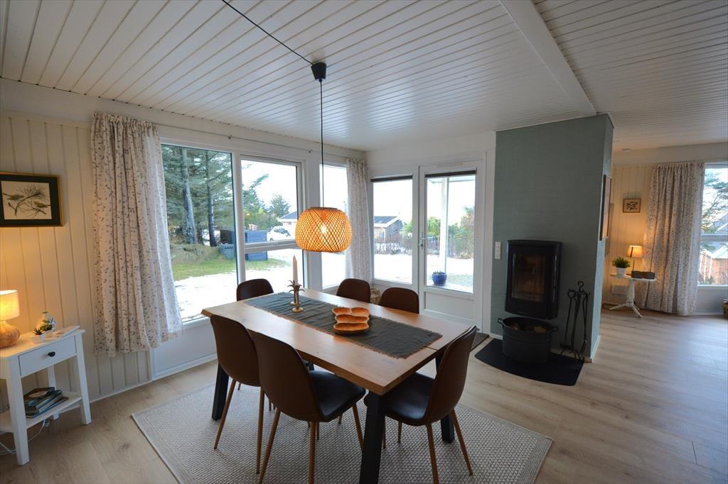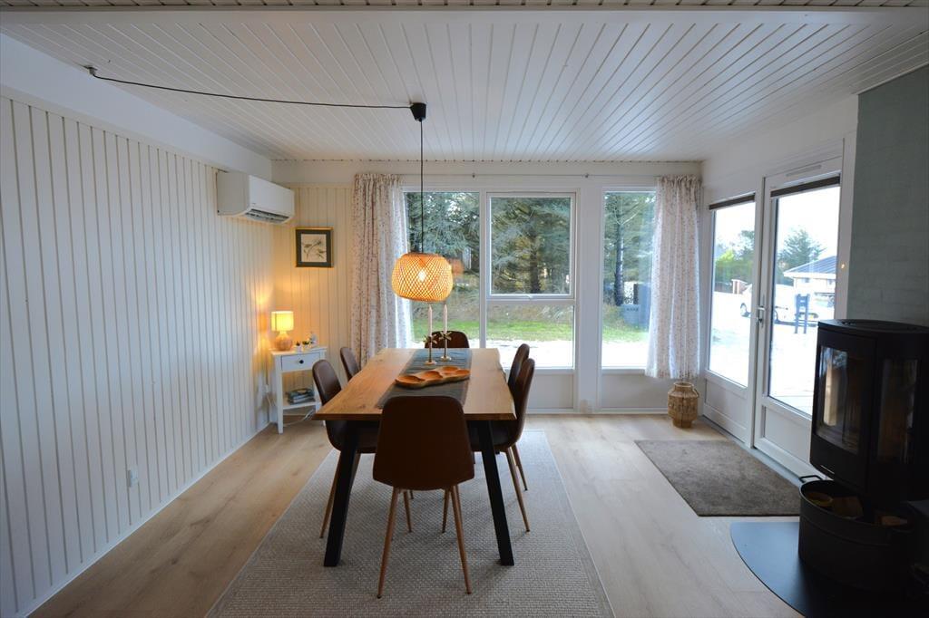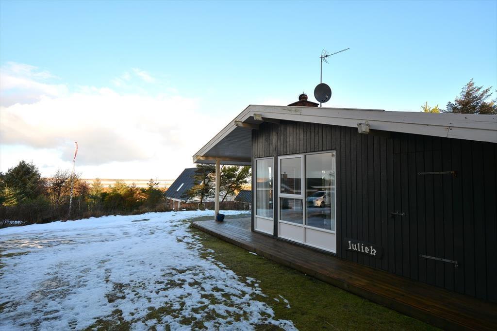Dieses schöne Ferienhaus in Nr. Fjand bietet eine der fantastischsten Aussichten der Region – mit Panoramablick über den Fjord und die Dünen sowie mit Blick bis zur Fischerstadt Thorsminde in der Ferne. Das Haus liegt leicht erhöht in der Landschaft, sodass Sie die herrliche Aussicht sowohl im Haus als auch draußen auf den Terrassen genießen können. Das Ferienhaus wurde modernisiert, hat sich jedoch seine gemütliche Ferienhausatmosphäre mit ruhigen Farben und einer entspannten Stimmung bewahrt, in der Sie sich schnell wie zu Hause fühlen werden. Finden Sie einen gemütlichen Platz mit Aussicht, lehnen Sie sich zurück mit einem guten Buch oder genießen Sie eine ruhige Tasse Kaffee, während die Erholung einkehrt. Das Herz des Hauses ist der große Wohn- und Essbereich, in dem viel Platz für alle ist und in dem Küche und Wohnzimmer offen miteinander verbunden sind – ideal für gemeinsames Kochen, gemütliche Gespräche und Nähe.