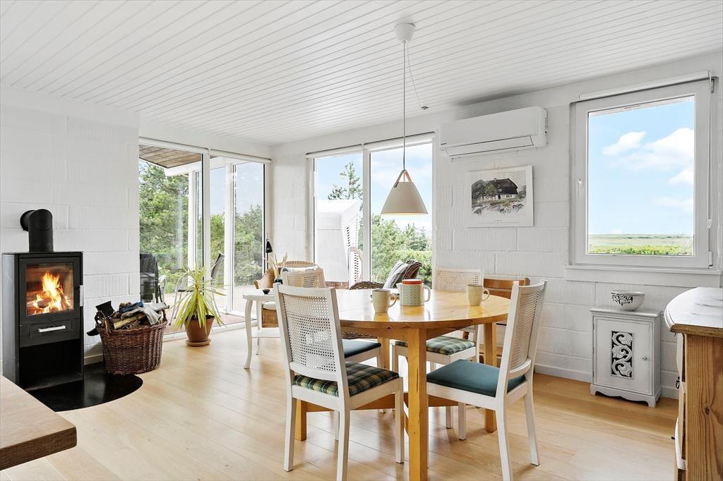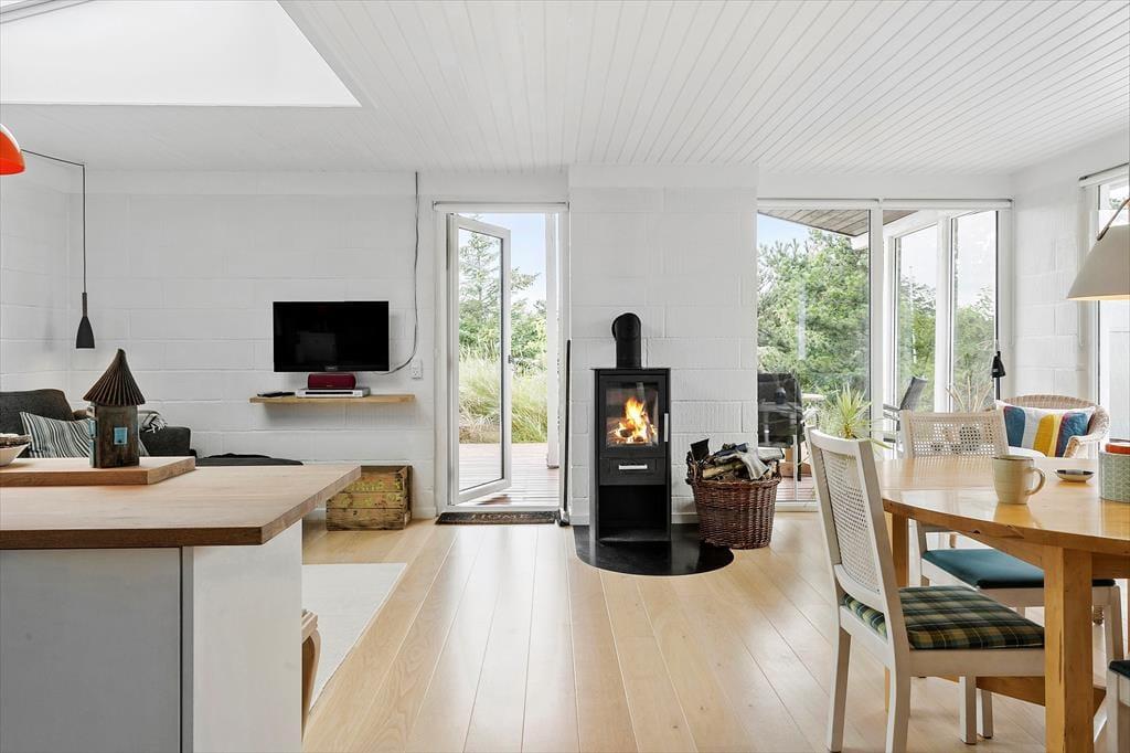 Wenn ihr dieses äußerst schöne Ferienhaus betretet, werdet ihr von einer hellen und gemütlichen Einrichtung empfangen. Licht fällt nicht nur durch die großen Fensterpartien, sondern auch durch das Dachfenster über der Sitzecke. Hier könnt ihr abschalten und Zeit miteinander genießen, ohne Stress und Hektik. Der große Küchen- und Wohnbereich bietet euch den Raum, miteinander zu plaudern und zu lachen, ganz gleich, welchen Aktivitäten ihr euch widmet. Wenn euch die Füße wehtun nach einem Tag voller Erlebnissen, könnt ihr den herrlichen Kaminofen anmachen, die Beine hochlegen und entspannen, um euch bereitzumachen für den morgigen Tag