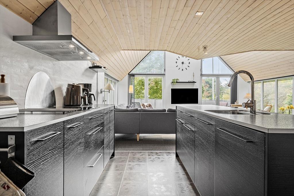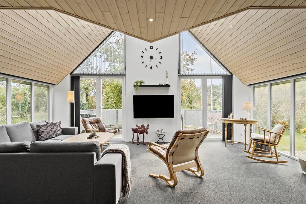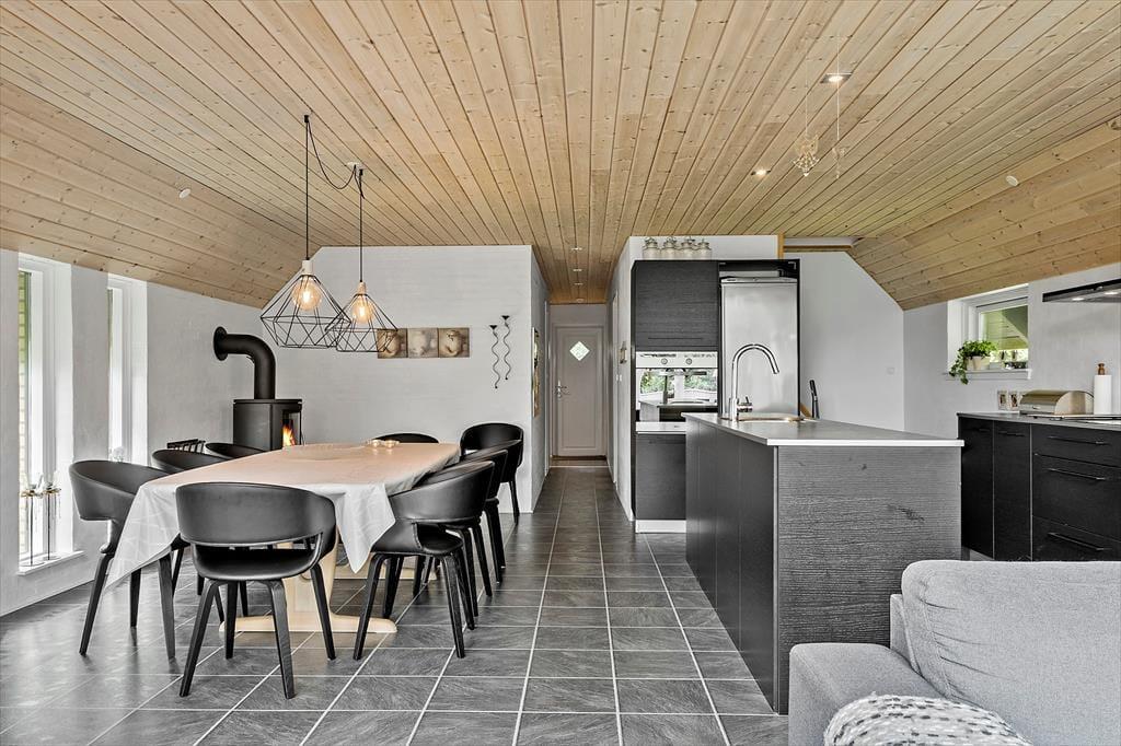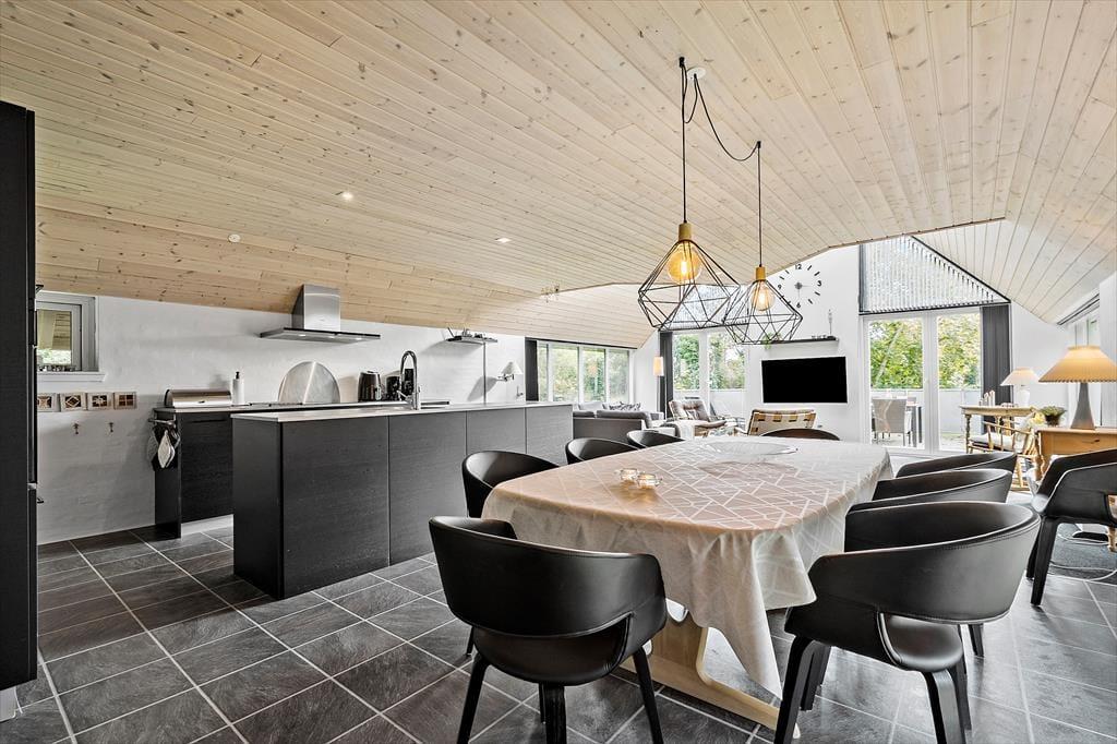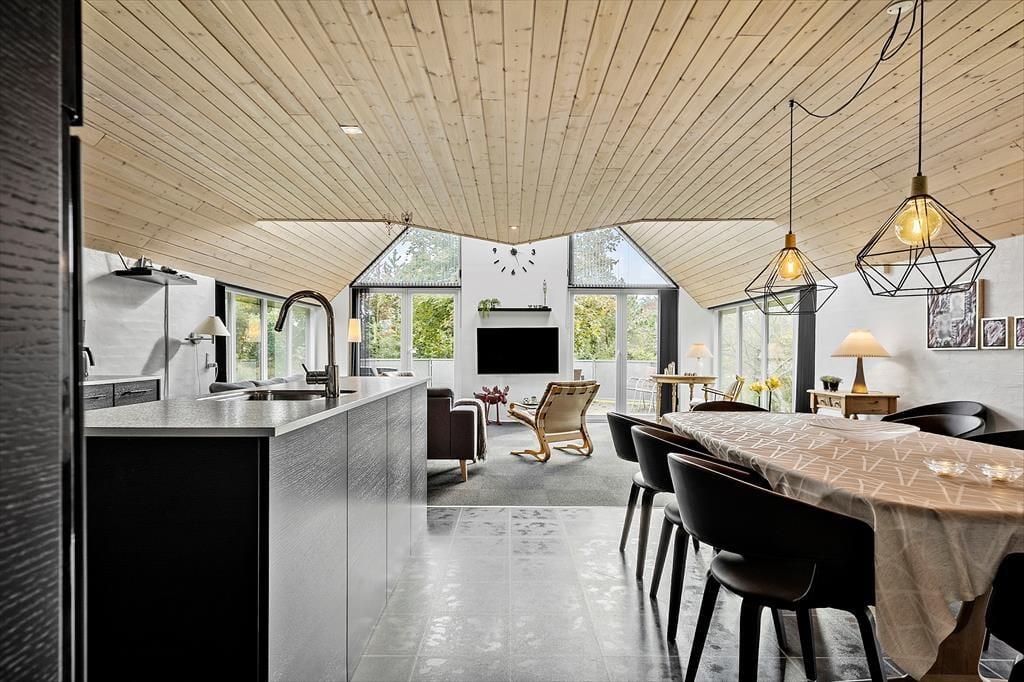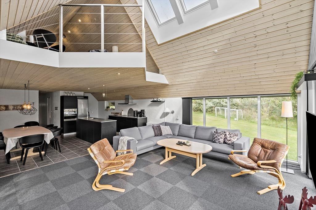 Ihr betretet ein modernes Ferienhaus, in dem Charme und Funktionalität Hand in Hand gehen. Das Herz des Hauses – Wohnbereich, Küche und Essplatz – liegt in offener Verbindung, sodass ihr zusammen seid bei allem, was ihr tut und gemeinsam schöne Ferienmomente entstehen lassen könnt. Hohe Decken und bodentiefe Fenster lassen viel Licht herein und schaffen eine luftige, angenehme Atmosphäre. Ob ihr gemeinsam kochen möchtet, Spiele spielt, ein gutes Buch lest oder einfach Ruhe genießen wollt – hier gibt es für alle Platz zum Wohlfühlen.