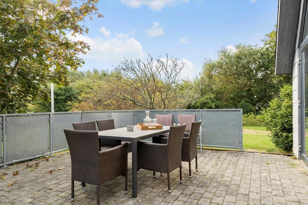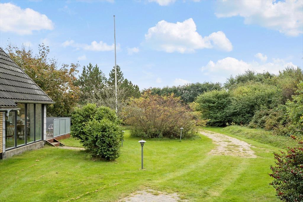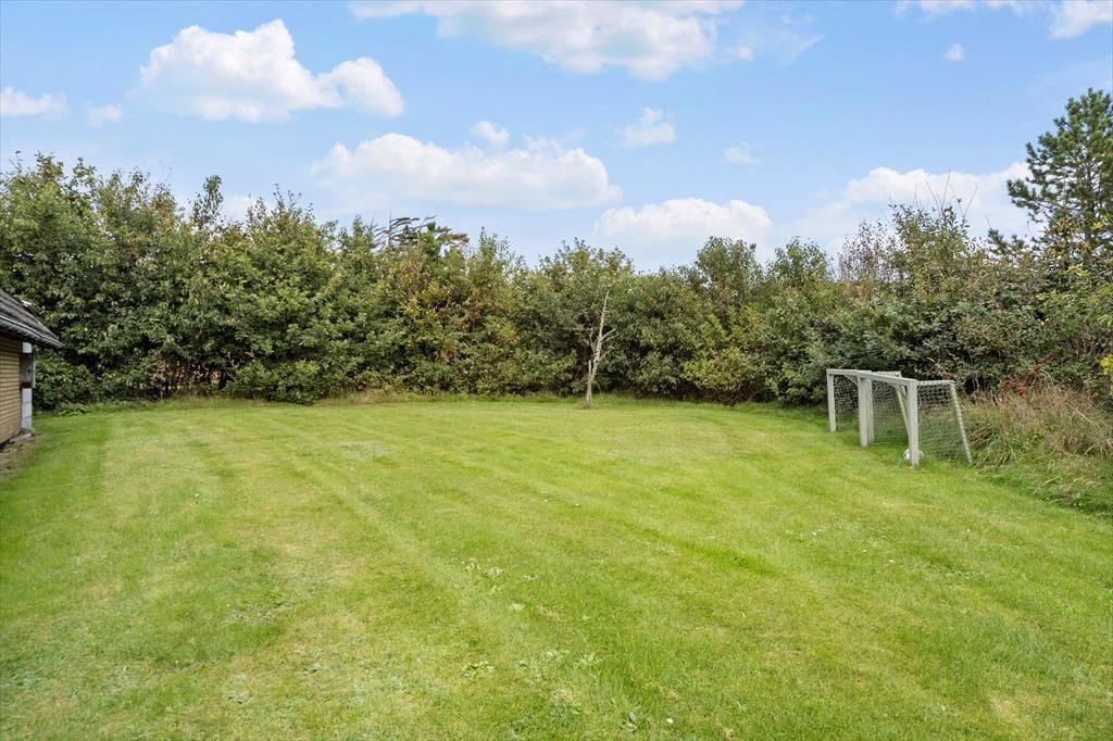 Vom Wohnzimmer aus tretet ihr direkt auf die schöne Terrasse, wo ihr mit einer Tasse Kaffee entspannen, die Sonne genießen oder den Grill für einen gemütlichen Abend anfeuern könnt. Die Terrasse liegt gut geschützt, sodass ihr fast immer ein warmes Plätzchen im Windschatten findet. Der Garten ist groß und ideal für Spiel und Bewegung – perfekt für ein Fußballspiel, eine Runde Wikingerschach oder einfach zum Austoben an der frischen Westjütländischen Luft. Hier haben Kinder sowie Erwachsene reichlich Platz für Aktivität und Entspannung.