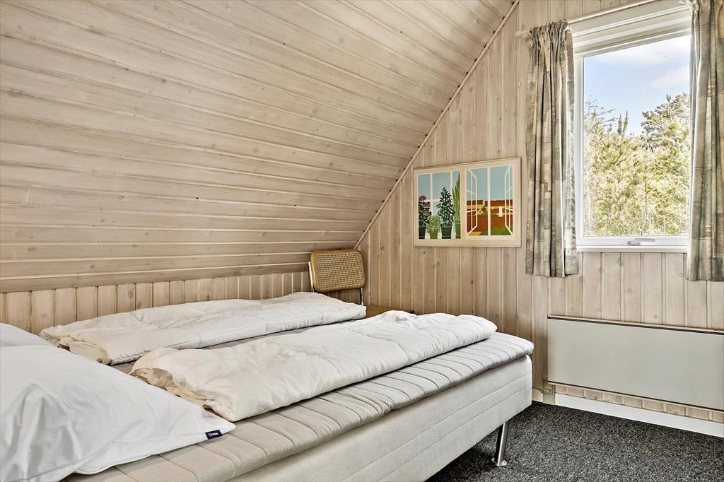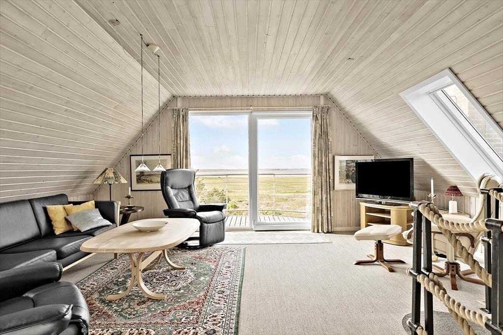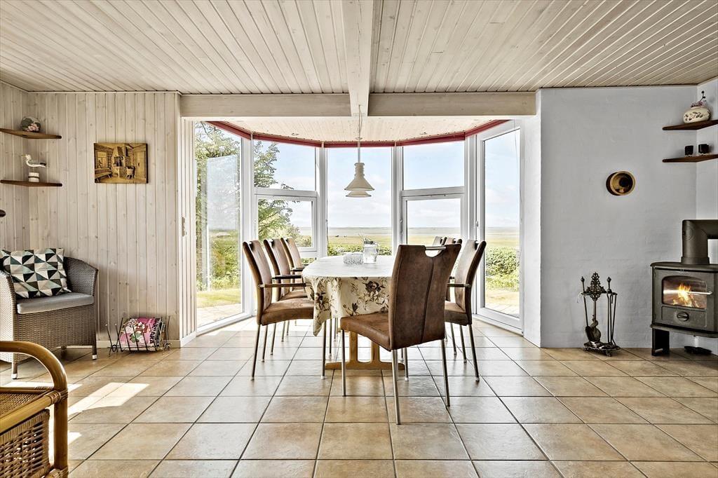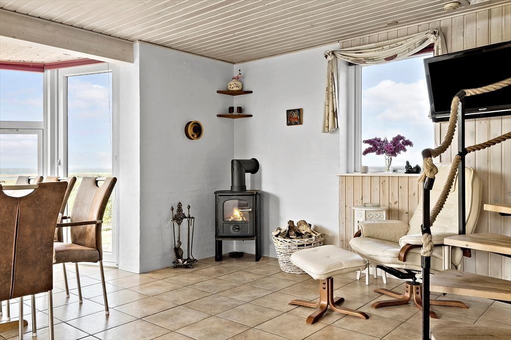 Willkommen in diesem großen, schönen Ferienhaus mit Aussicht auf den Nissum Fjord. Im Obergeschoss empfängt dich ein geräumiger Wohnraum. Durch die große Fensterpartie fällt viel natürliches Licht in den gemütlich eingerichteten Raum. Die Fensterpartie begeistert zudem mit einem prachtvollen Panoramaausblick über die hübsche Landschaft und den Fjord. Begrüße jeden neuen Urlaubstag mit einem Becher Kaffee auf dem Balkon, während die Vögel ringsum fröhlich zwitschern. Oder lehne dich entspannt im Sessel zurück und genieße die Aussicht, während dein Partner unten in der Küche ein köstliches Frühstück vorbereitet. Schöner und entspannter kann ein Urlaubstag kaum beginnen. Das Abendessen genießt ihr zusammen im Esszimmer, das ebenfalls mit einer fantastischen Aussicht zu glänzen weiß. Nach Einbruch der Dunkelheit könnt ihr den langen, erlebnisreichen Tag wunderbar mit einem entspannten Bad im Whirlpool oder mit dem ein oder anderen Saunagang ausklingen lassen.