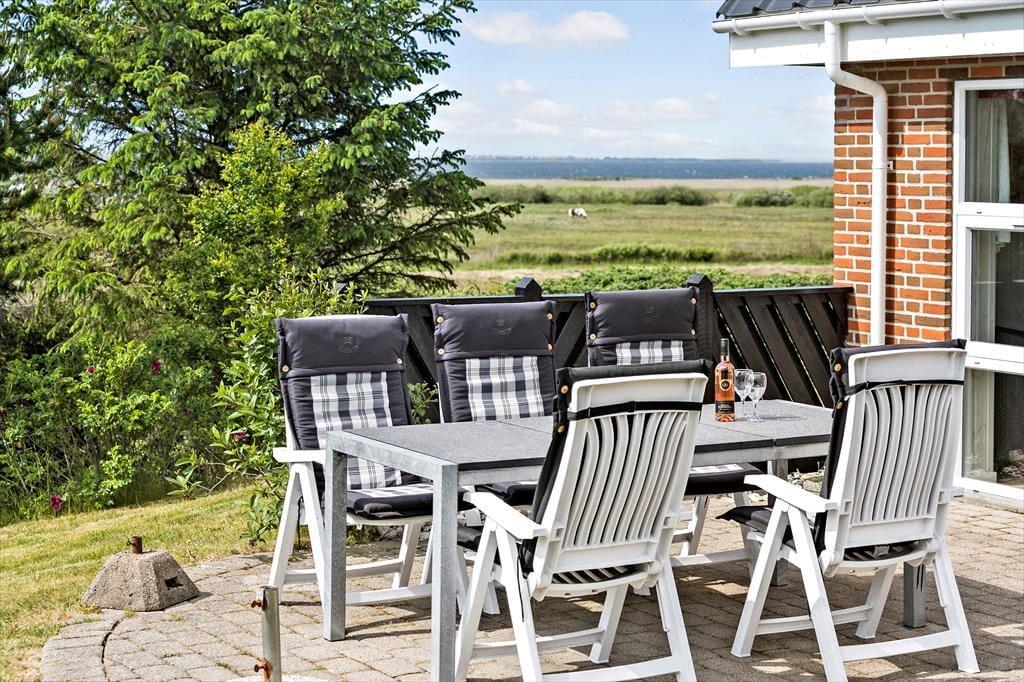 Untermalt vom Panoramablick über Fjord, Dünen und Wiesen genießt du auf der Terrasse deines Ferienhauses herrliche Stunden in der Sonne. Dein Urlaubsdomizil liegt auf einem großen Naturgrundstück in der ersten Häuserreihe vor dem Fjord. Platz zum Erholen und Spielen ist reichlich vorhanden. Während du mit den anderen Erwachsenen auf der Terrasse in gemütlicher Runde beisammensitzt, werden deine Kinder vergnügt in der Sandkiste spielen, schaukeln oder sich mit Outdoorspielen die Zeit vertreiben. Selbst euer Familienhund, der euch gegen Zahlung einer Haustiergebühr in Höhe von 28,- Euro in den Urlaub begleiten darf, wird sich auf dem großzügig bemessenen Grundstück sichtlich wohlfühlen. Die offene Umgebung schafft in Kombination mit der Aussicht auf Fjord und Landschaft eine außergewöhnlich ruhige, überaus idyllische Atmosphäre, die es Groß und Klein leicht macht, die Natur zu genießen und die Seele baumeln zu lassen.