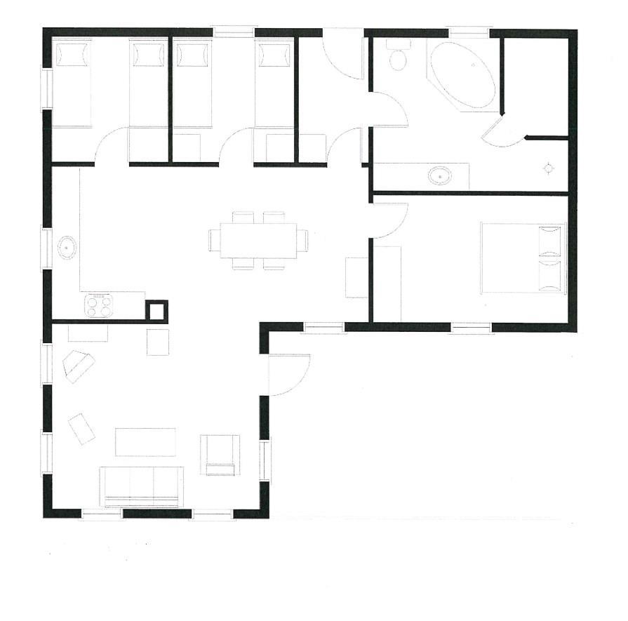 Es gibt ein großes Schlafzimmer mit Doppelbett sowie zwei Schlafzimmer mit jeweils zwei Einzelbetten.